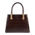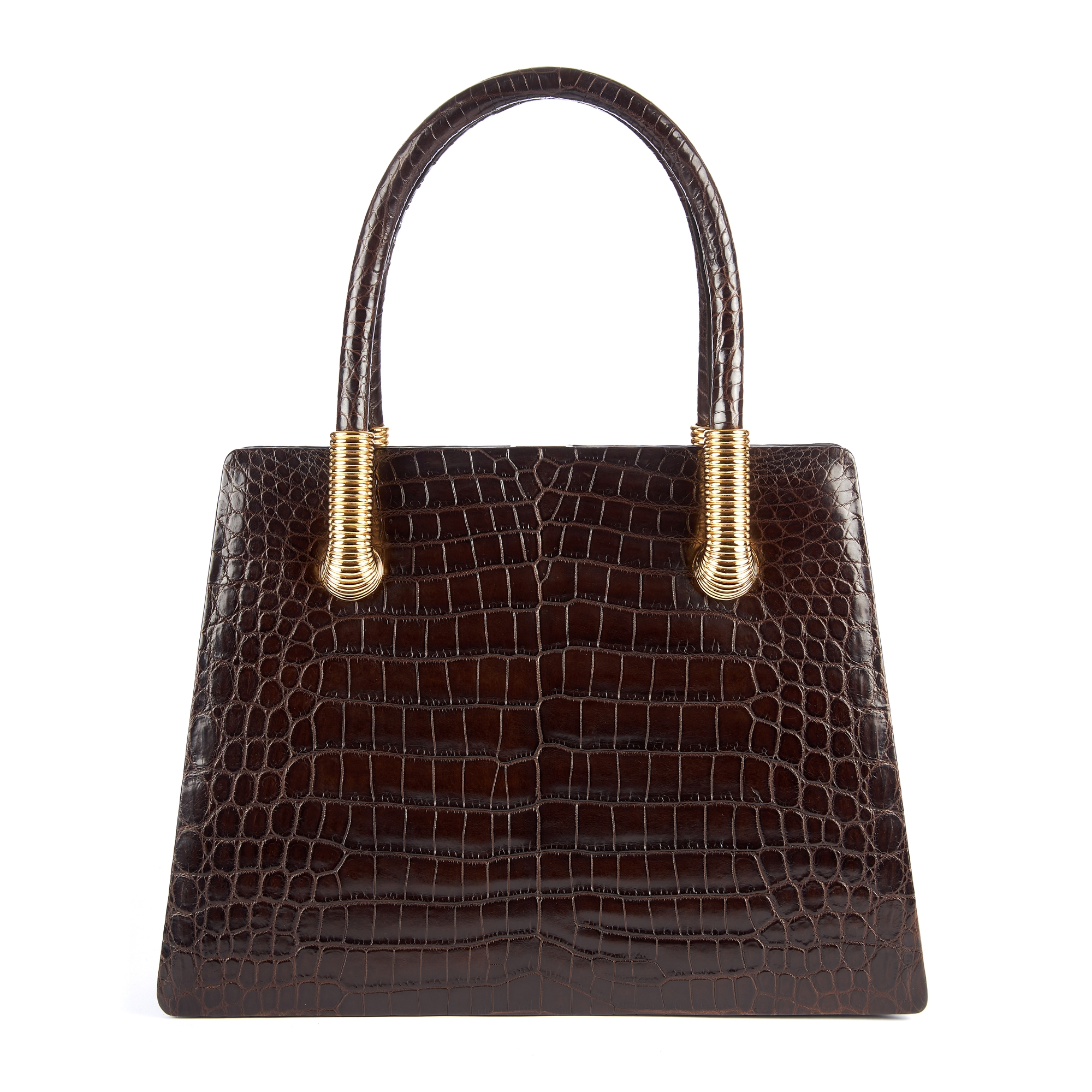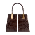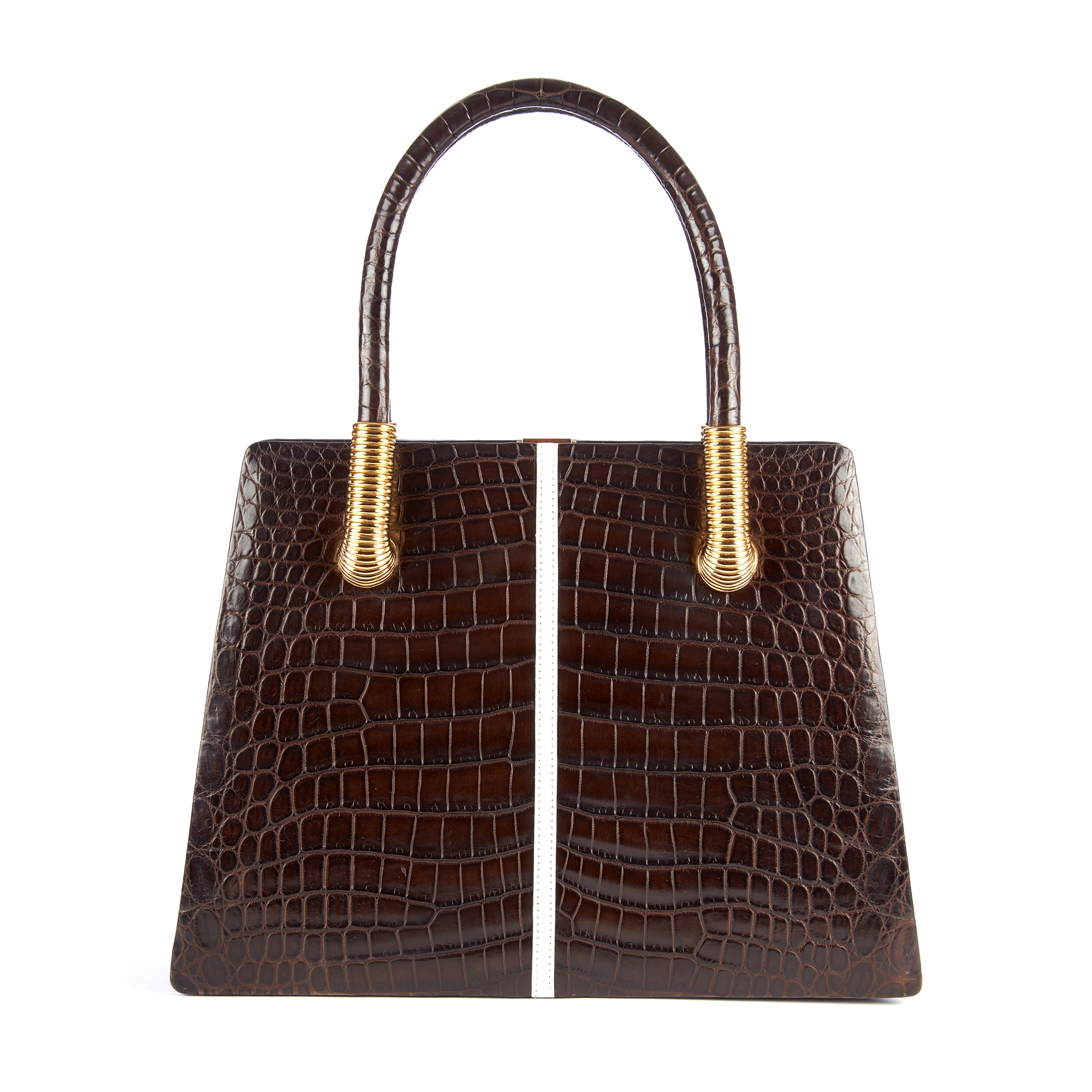 Calie Parese, a Signature Tote handbag, designed with a structured shape, crafted from the finest Nile crocodile, featuring a white central stripe, rigid looping top handles, gold-tone coil detailing to the handle anchors, top latch fastening and opening to a brown suede lined interior, measuring 10 by 30 by 40.5cm