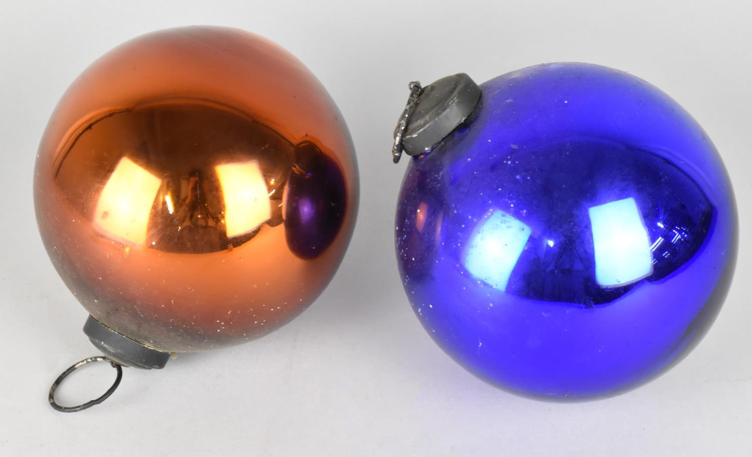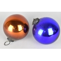 Two 19th Century Witches Balls In Gold and Blue, 14cm Diameter