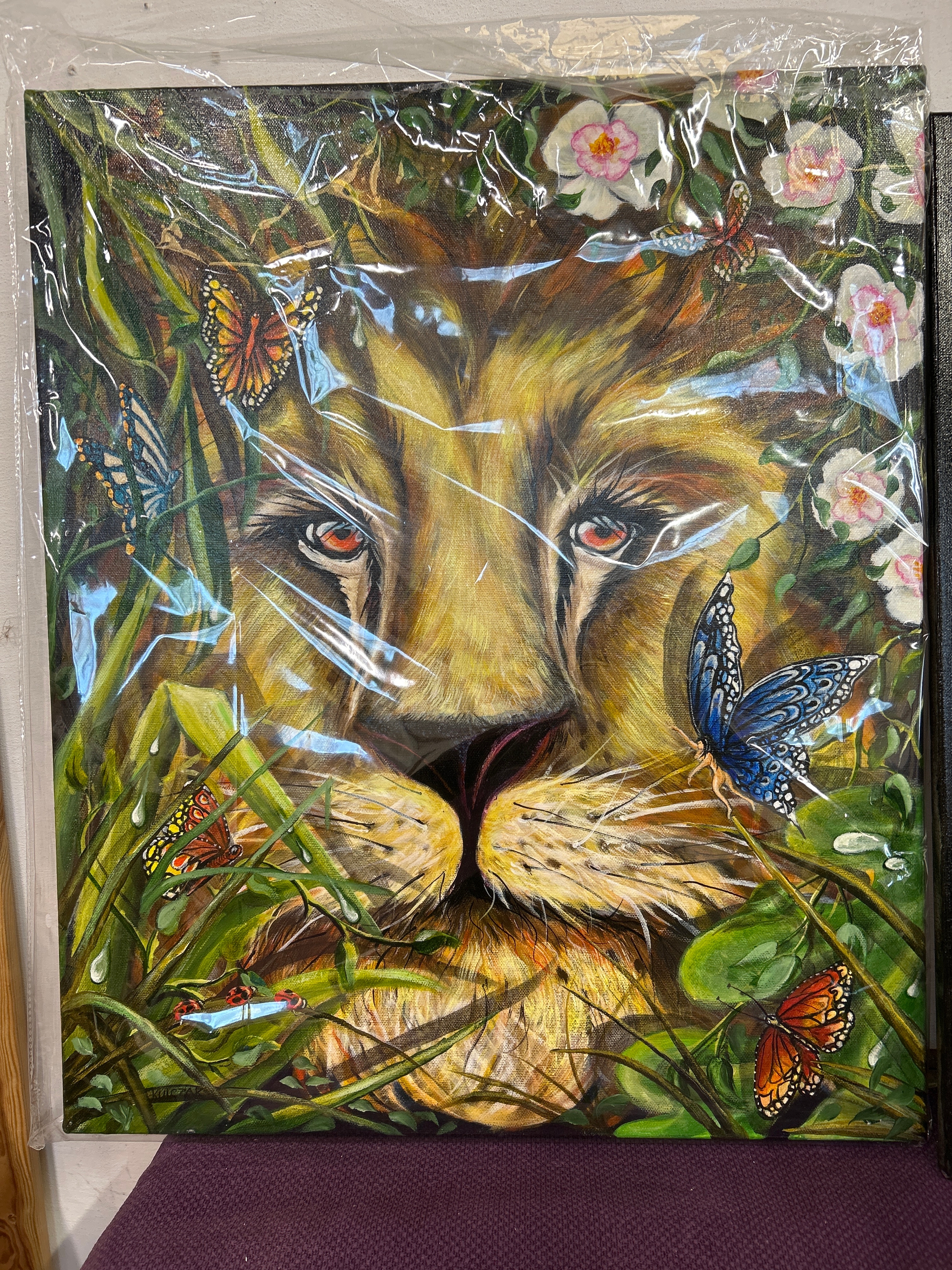Peeping Lion, original artwork acrylic on canvas by Kulczak