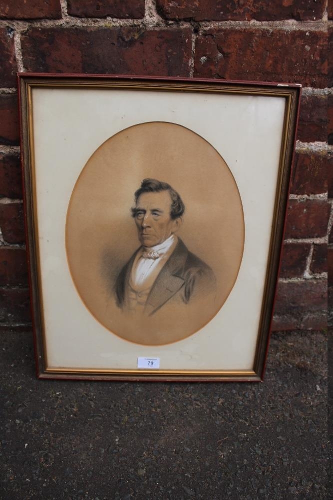 A LATE 19TH / EARLY 20TH CENTURY OVAL HEAD AND SHOULDER PORTRAIT STUDY OF A GENTLEMAN WITH WHITE CRAVAT, unsigned, watercolour and pencil heightened with white on paper, framed and glazed, 37 x 28 cm