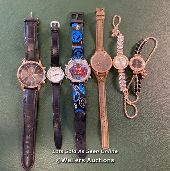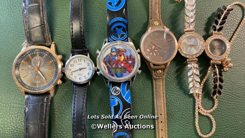 BAG OF WATCHES X6 INC. MARVEL, TIMEX, KAHUNA, GENEVA QUARTZ, WATER DIAMOND QUARTZ BRACELETZ BLACK, WATER DIAMOND QUARTZ BRACELET WHITE