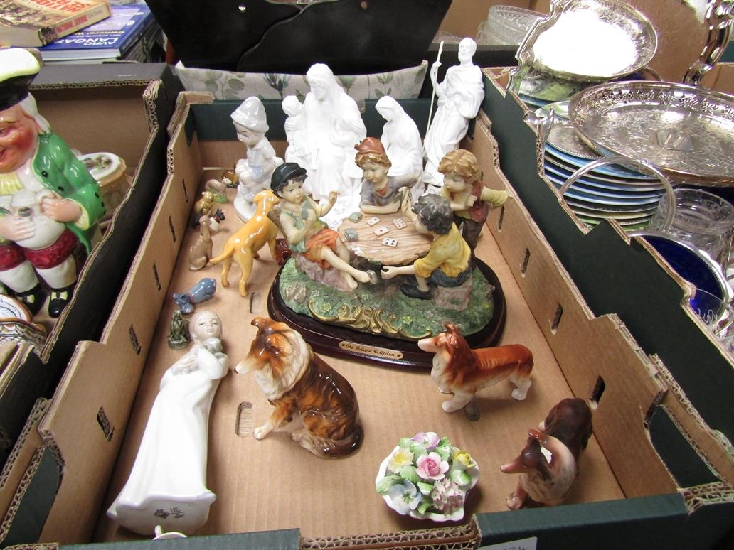 BOX OF FIGURINES AND ORNAMENTS TO INCL NAO