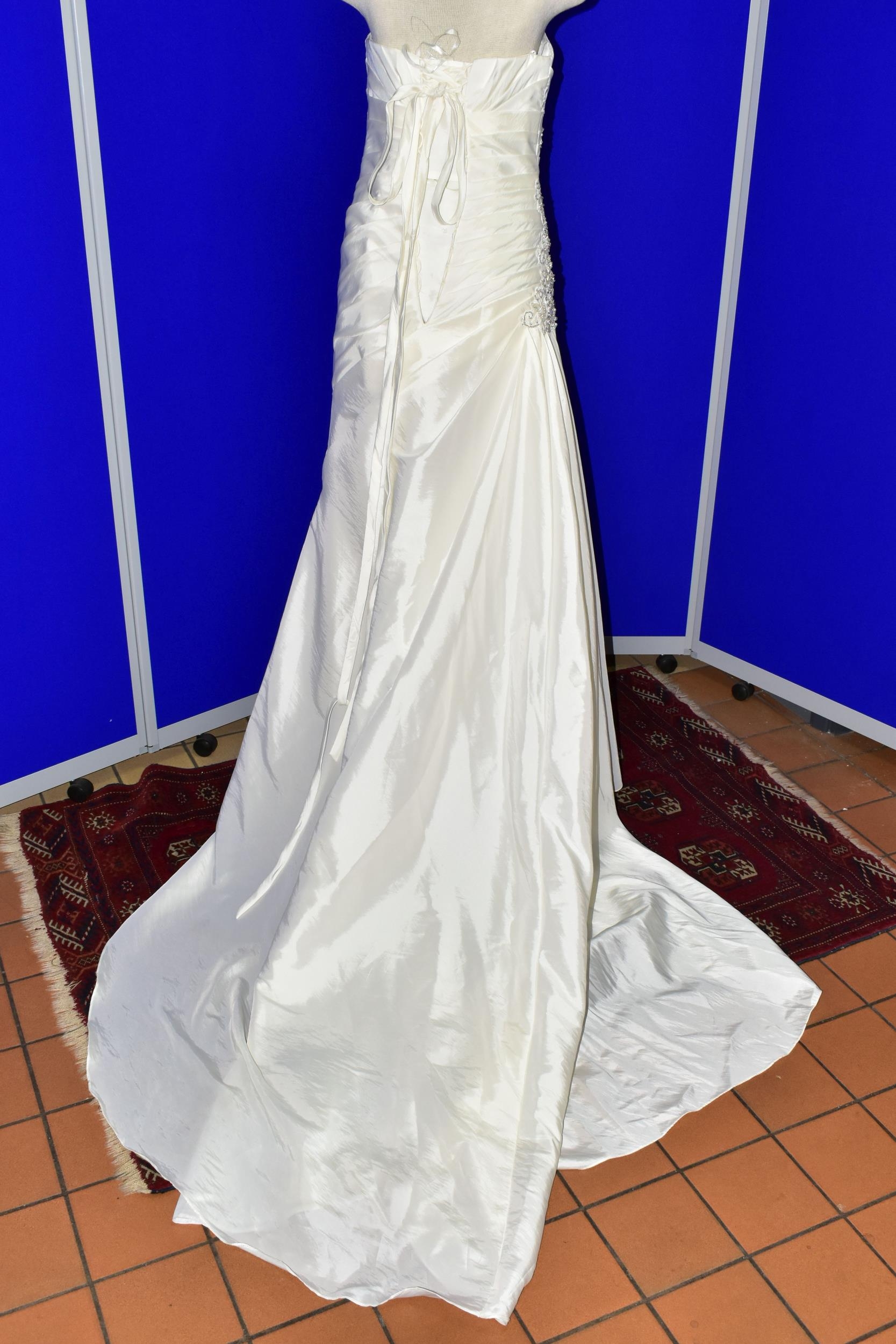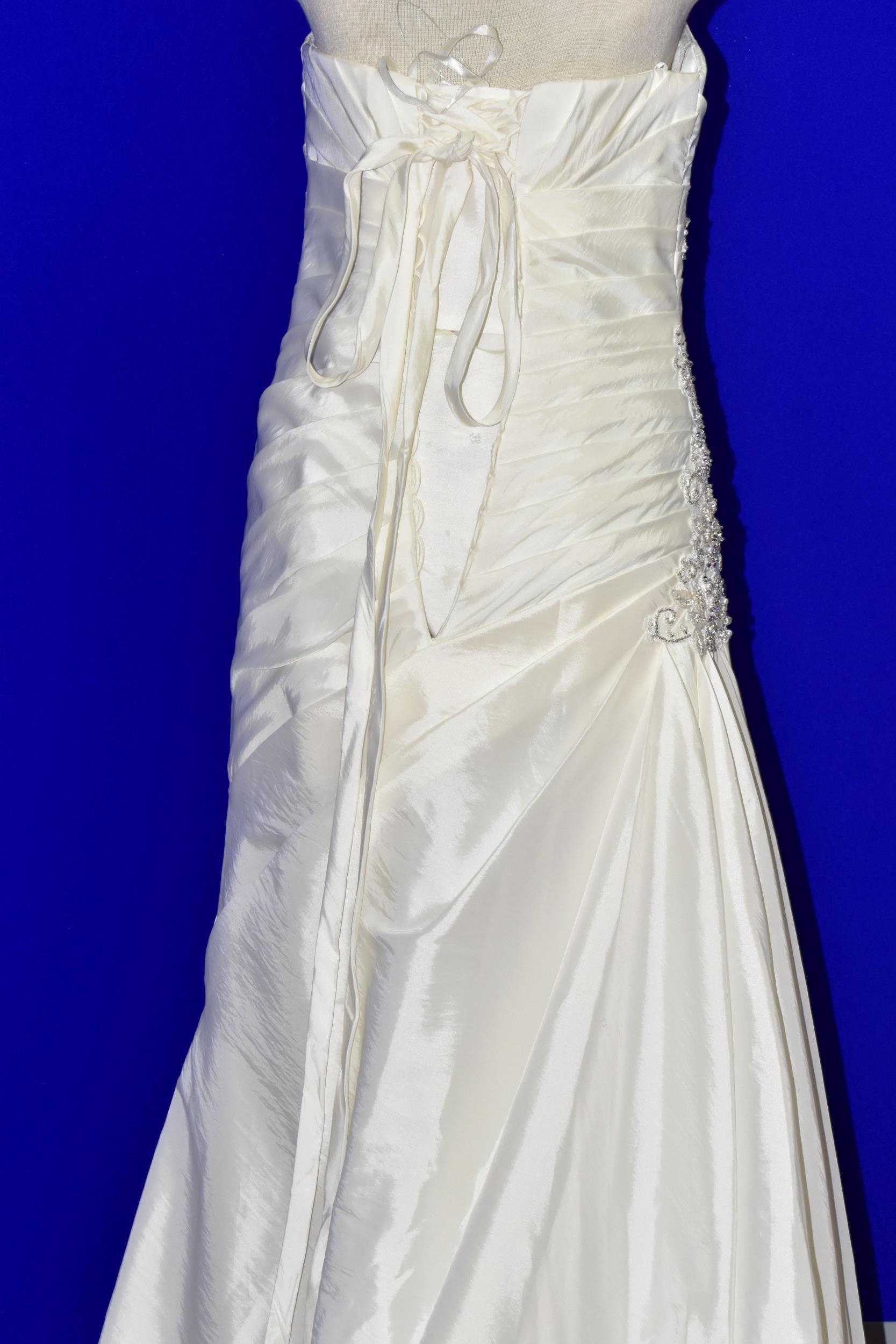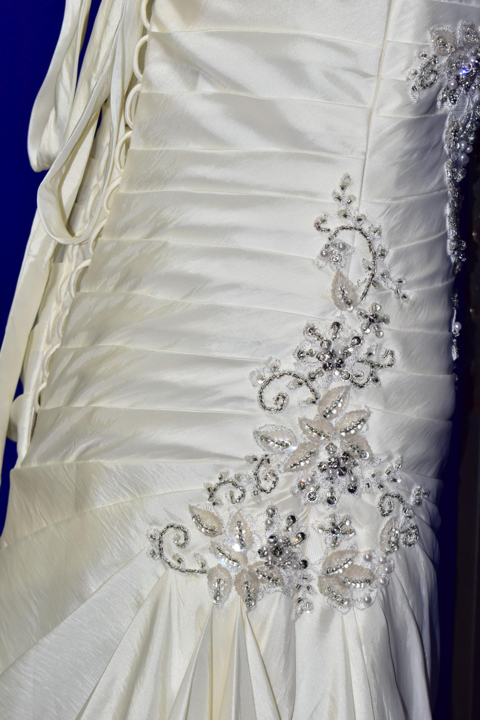 WEDDING DRESS, end of season stock clearance (may have slight marks) Ivory satin pleated, size 8, ribbon fastening for easy alteration (1)