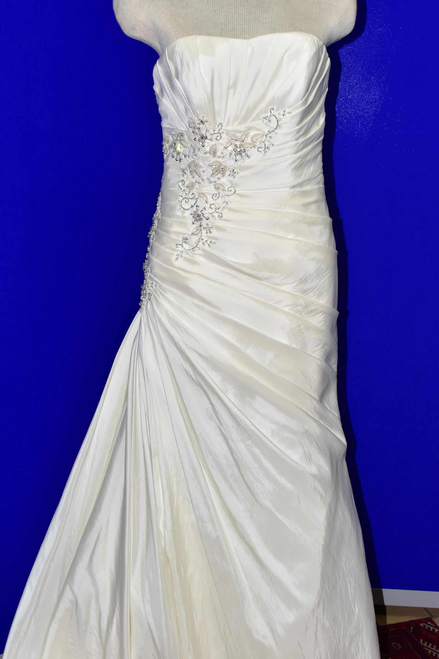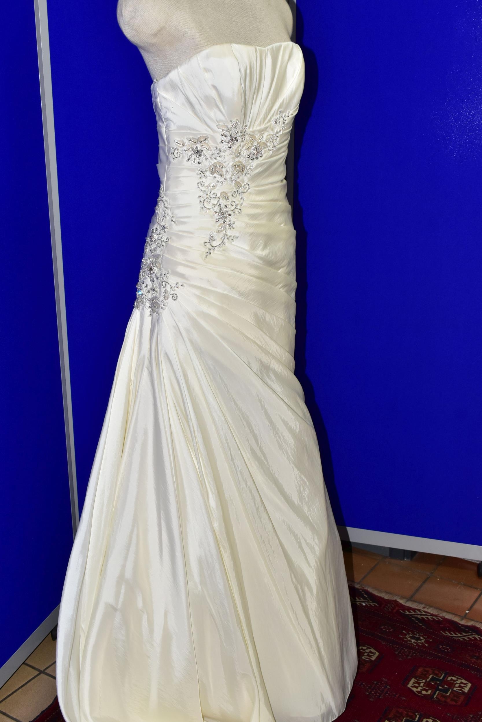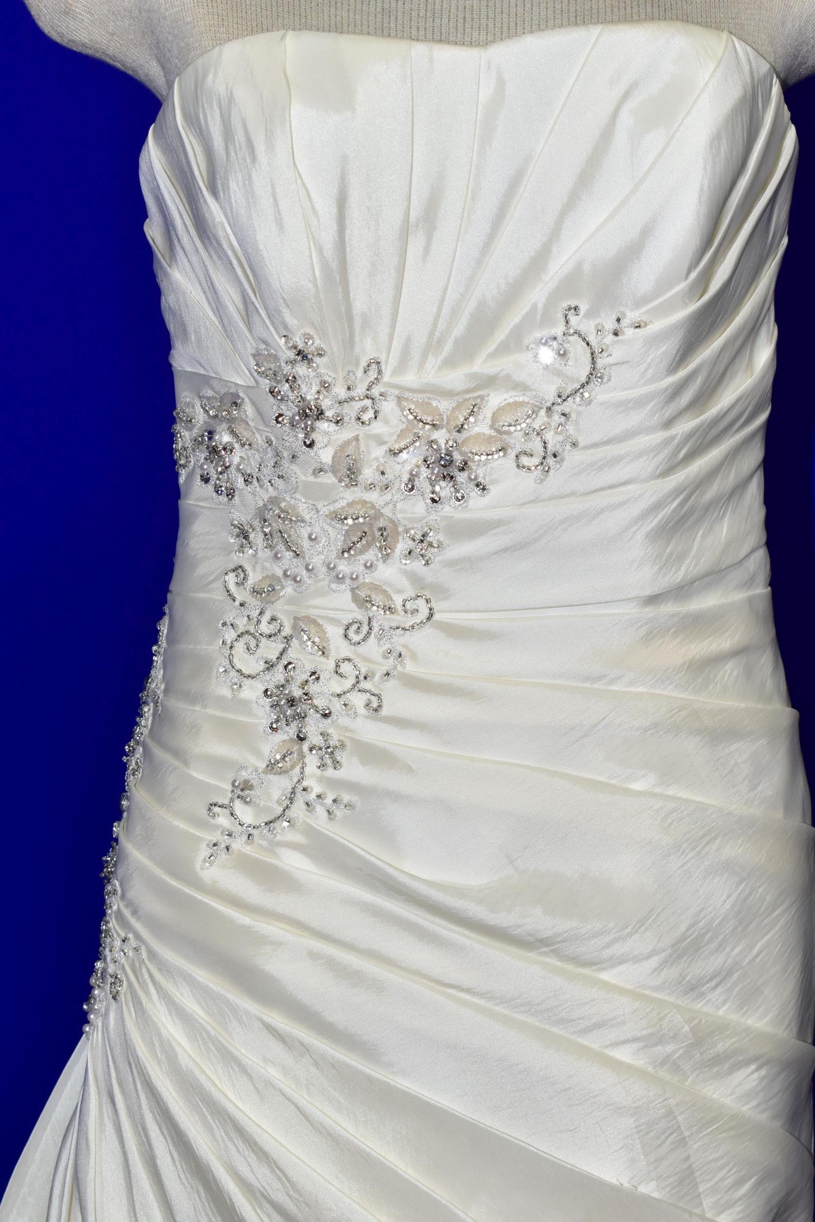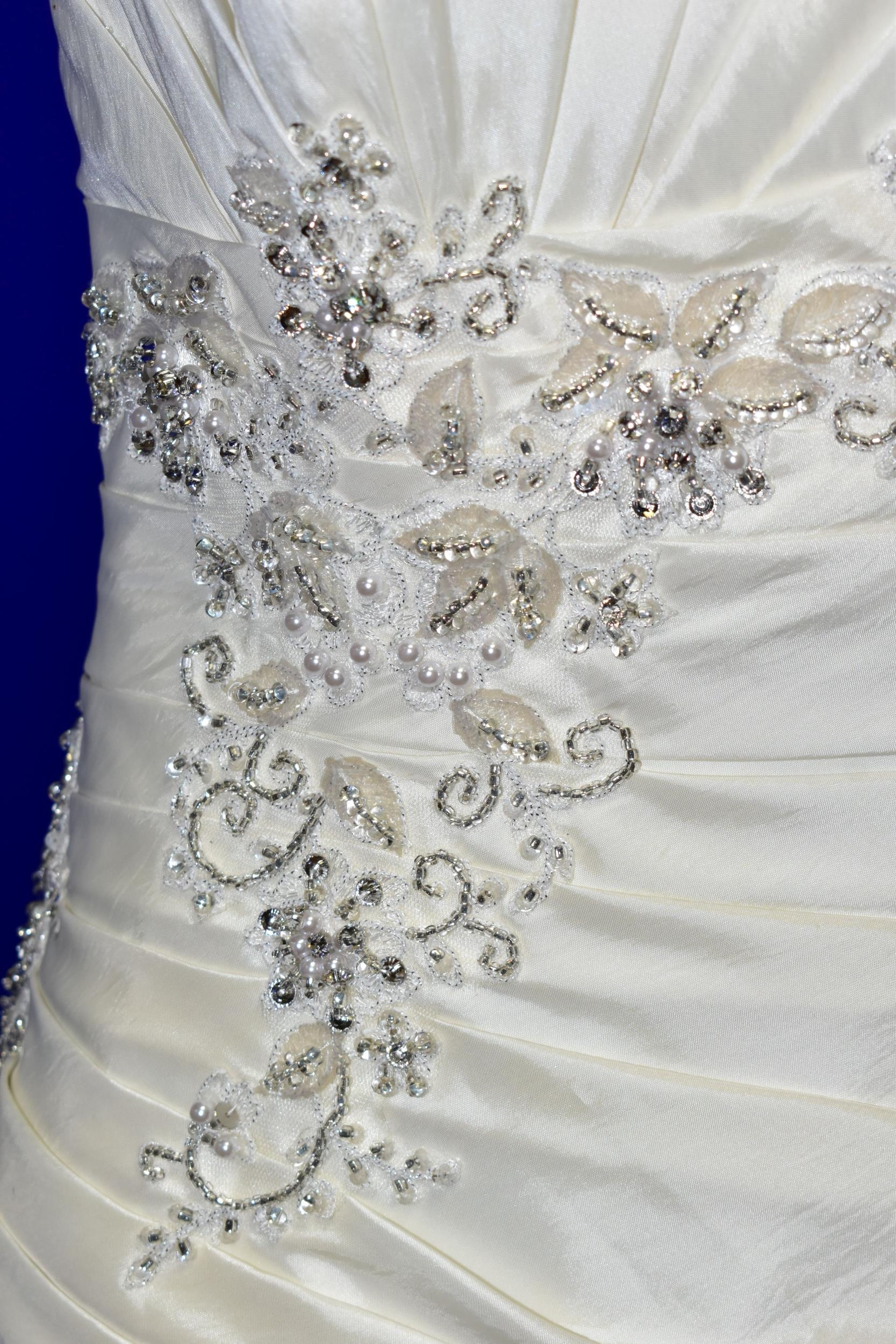 WEDDING DRESS, end of season stock clearance (may have slight marks) Ivory satin pleated, size 8, ribbon fastening for easy alteration (1)