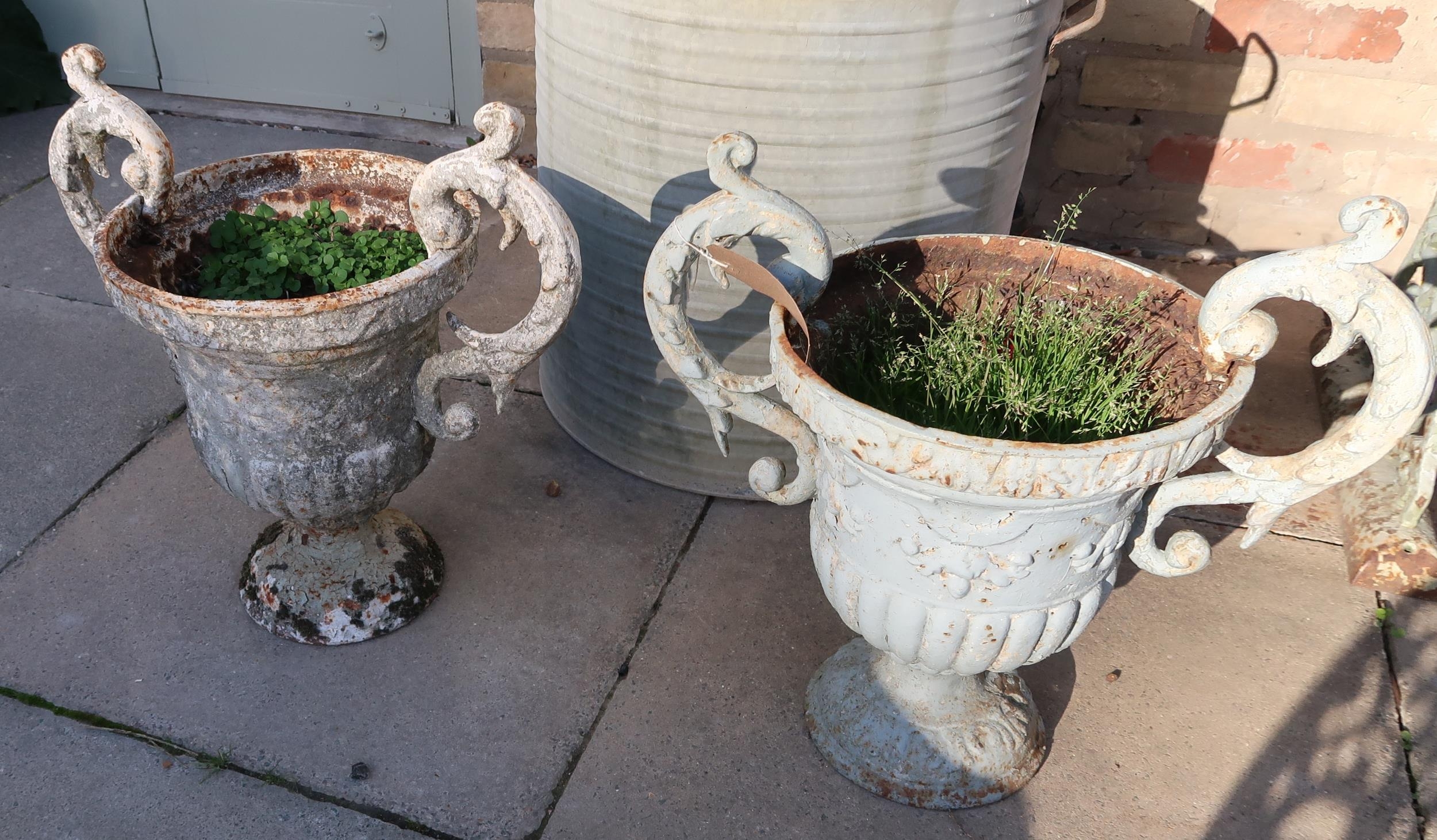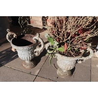 A pair of cast iron garden urns - Height 37cm