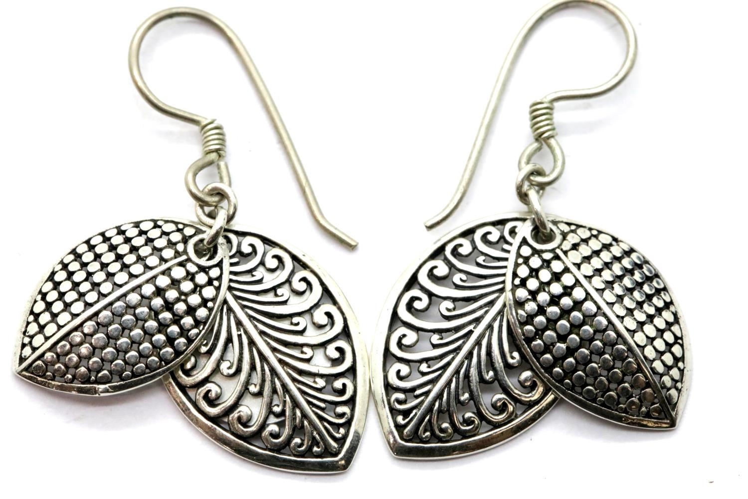 Pair of 1970s vintage ornate silver drop earrings. P&P Group 1 (£14+VAT for the first lot and £1+VAT for subsequent lots)