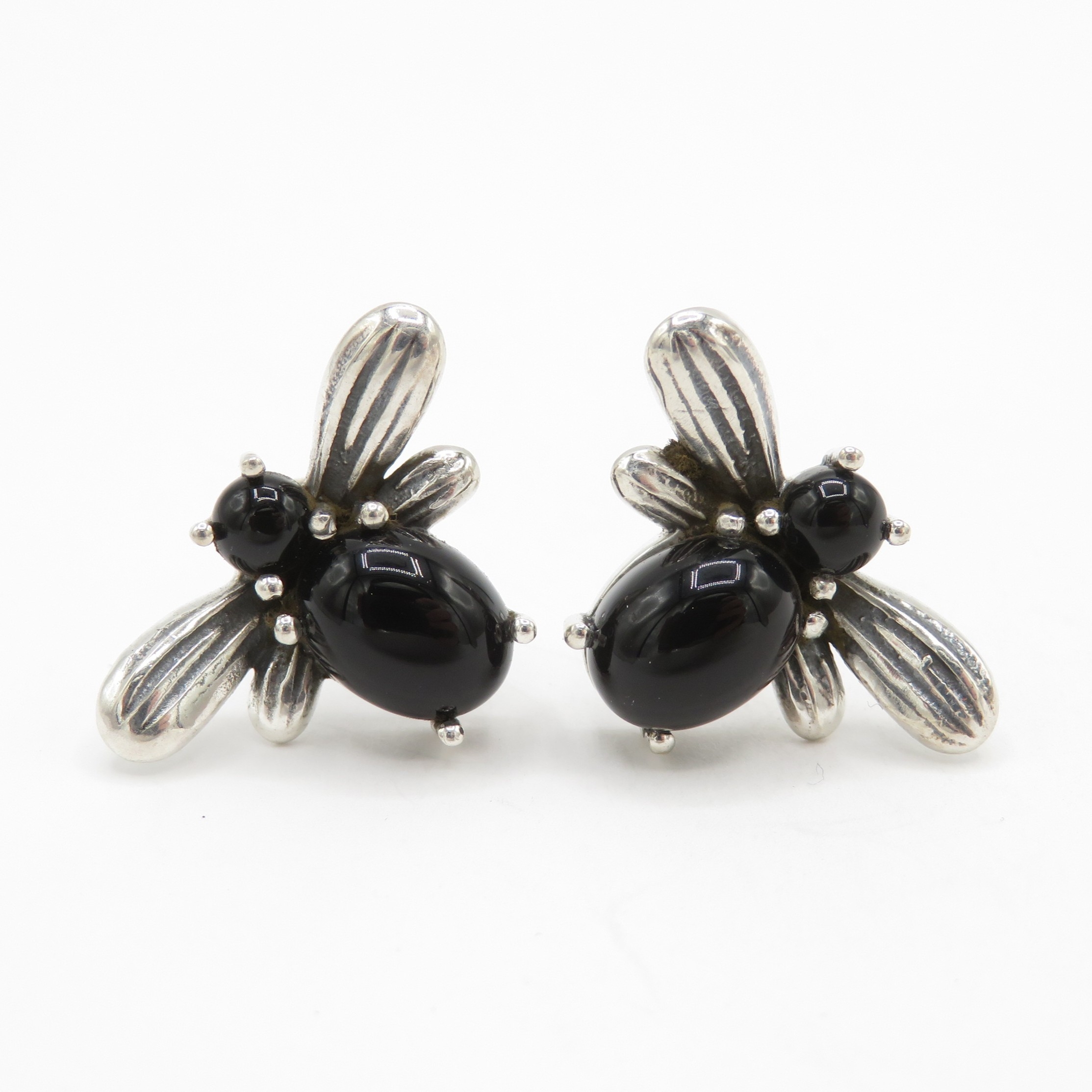 Sterling Silver 925 Black Gemstone Bug Earrings (4.9g)