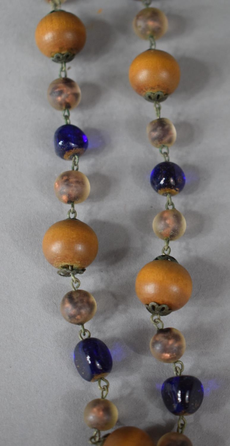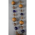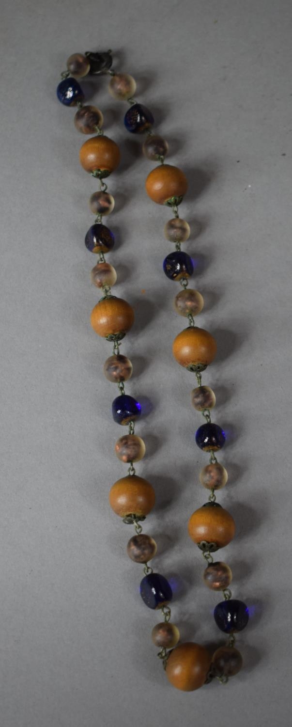 A Blue Foil Glass and Wooden Bead Necklace