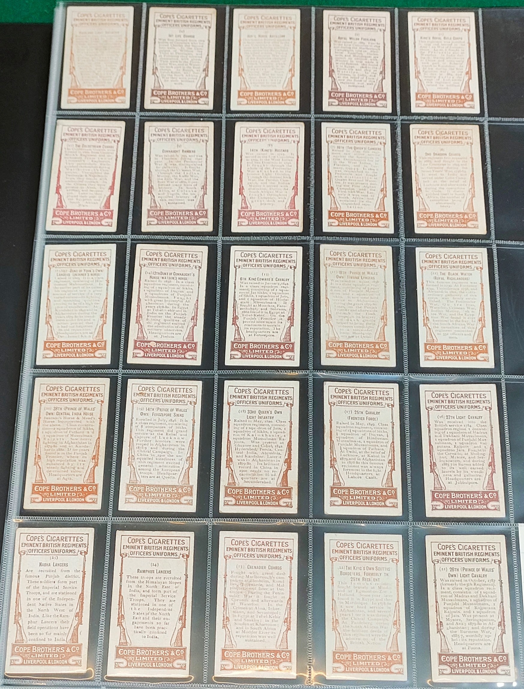 Set of Copes British Regiments Officers cards