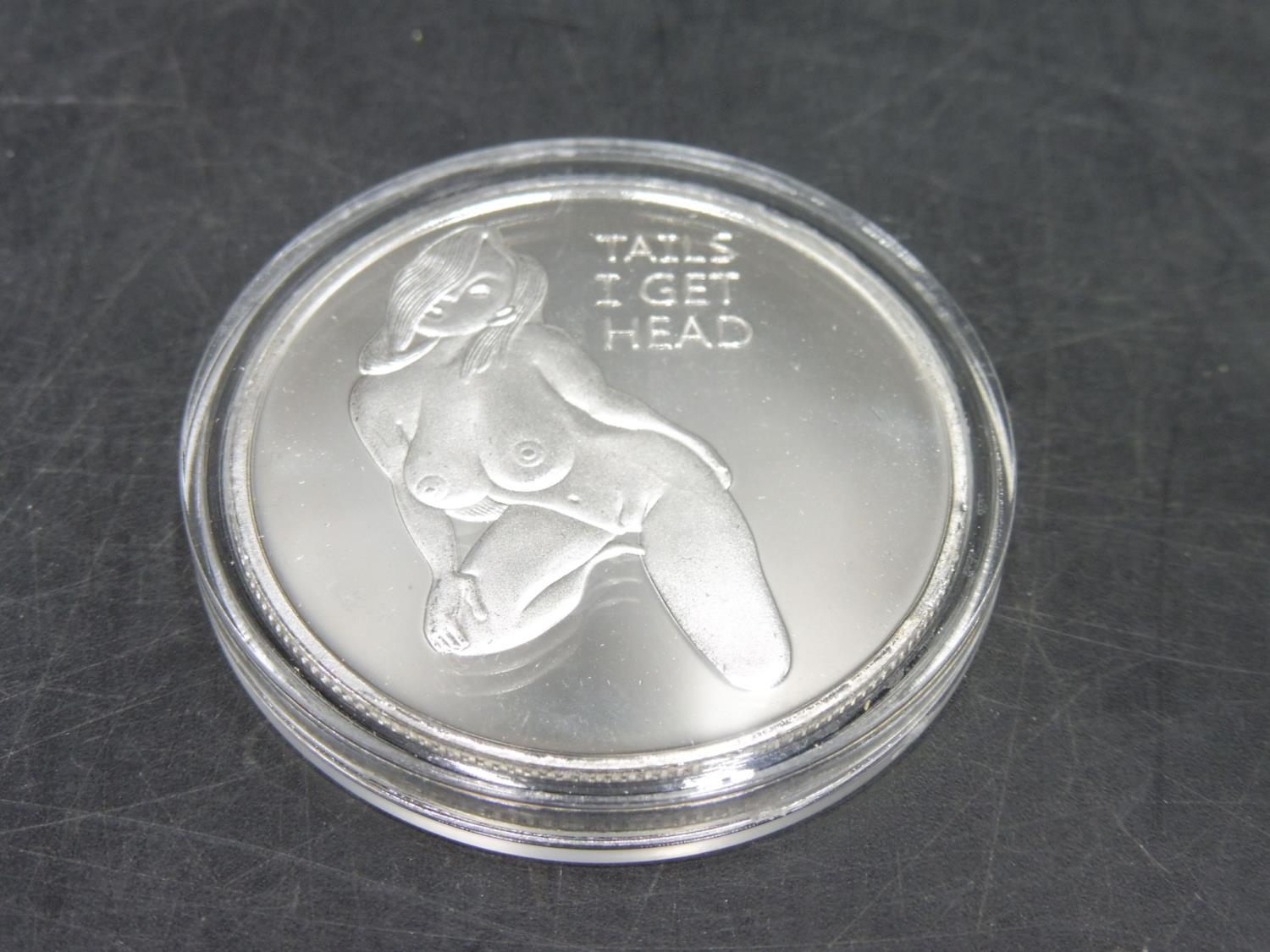 Silver Plated Adult "Heads & Tails" coin in plastic casing