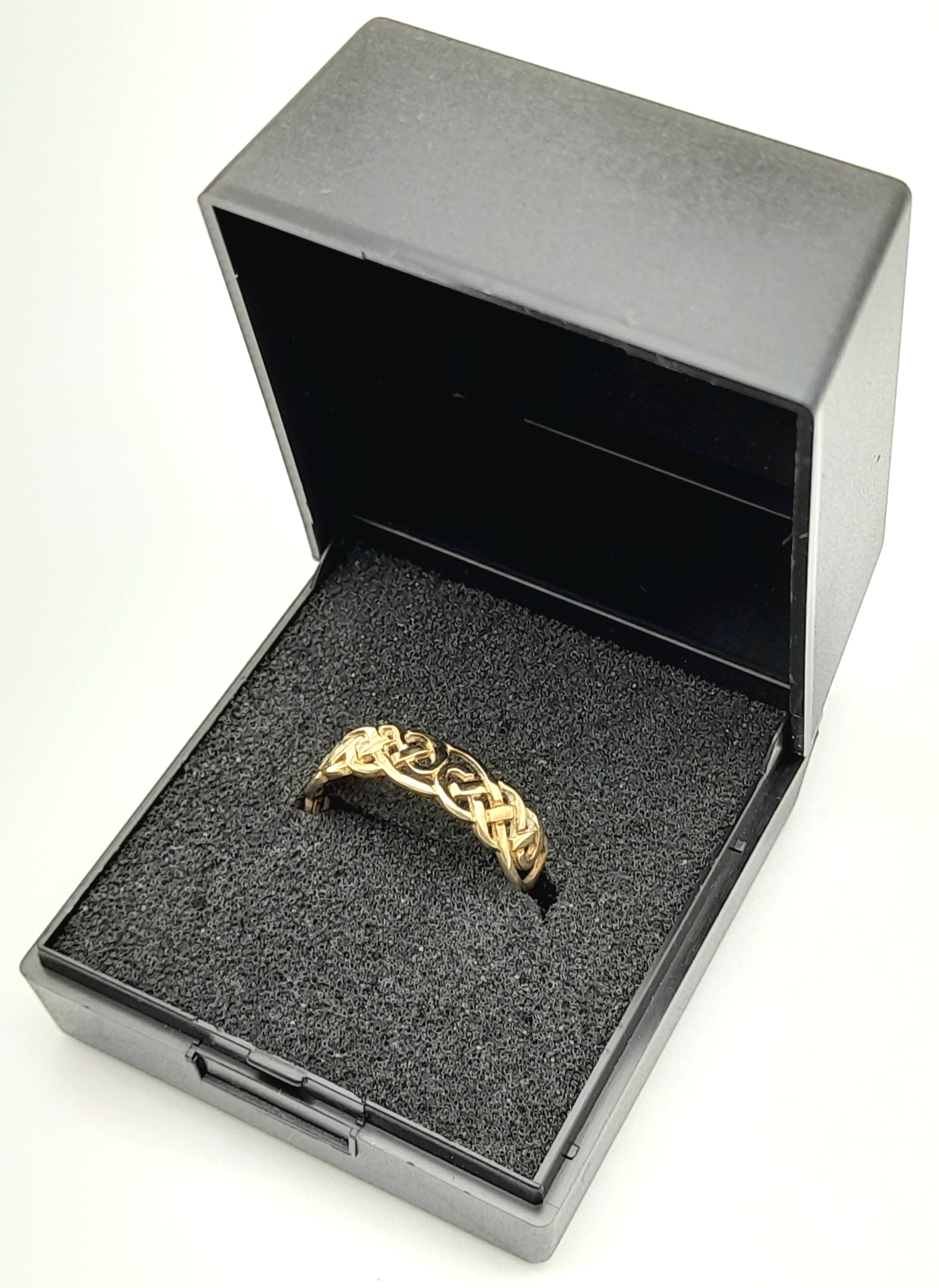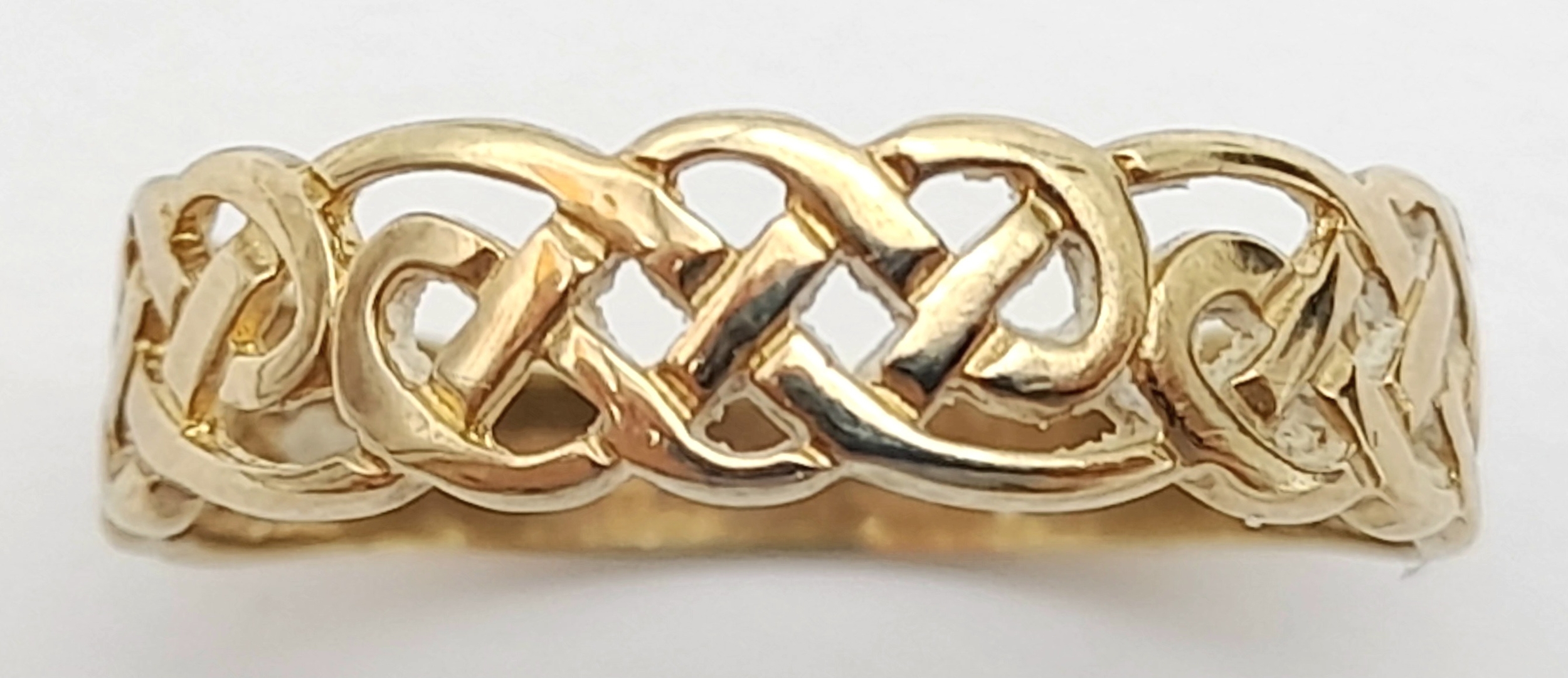 Vintage 9 CARAT GOLD ‘CELTIC’ DESIGN RING. Full UK hallmark.1.3 grams. Size M - M 1/2.