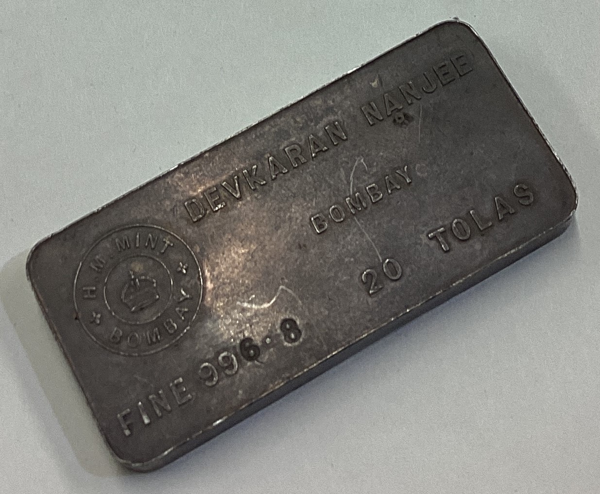 A heavy silver ingot. Approx. 233 grams. Est. £80 - £120.
