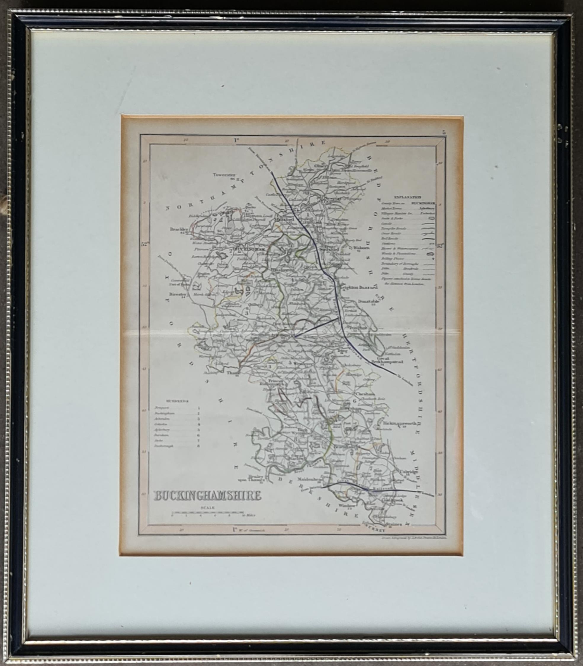 Antique Framed Printed Map of Buckinghamshire. Believed to be from the 1800's. Possibly a plate from a book of that period. Overall Size 38 by 33cm. Shipping is available. Please ask for a quote before bidding. Where possible we combine shipping costs. Remember, if you are the highest bidder above reserve on this Lot you have bought the item and are legally responsible for the item. Viewing is recommended in either person or via video link. Contact us to arrange.