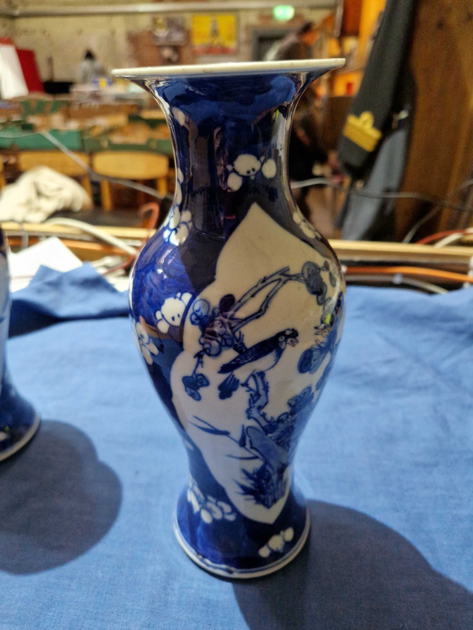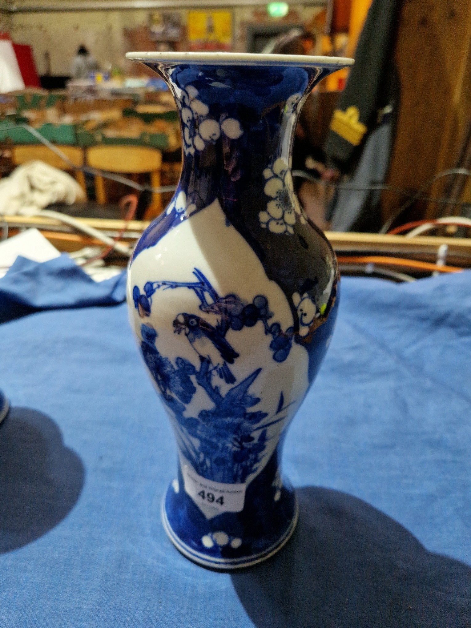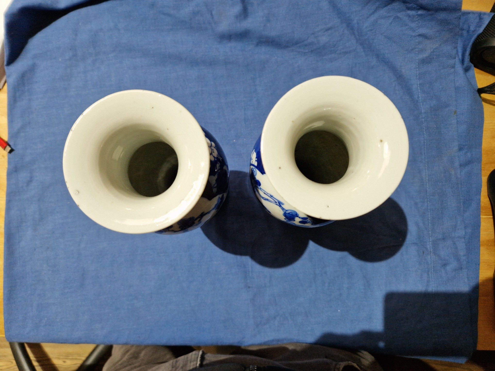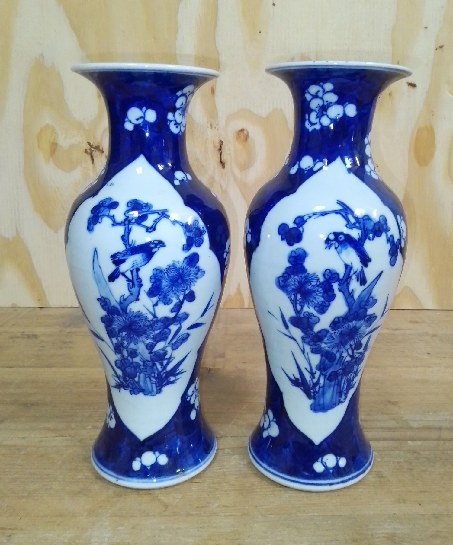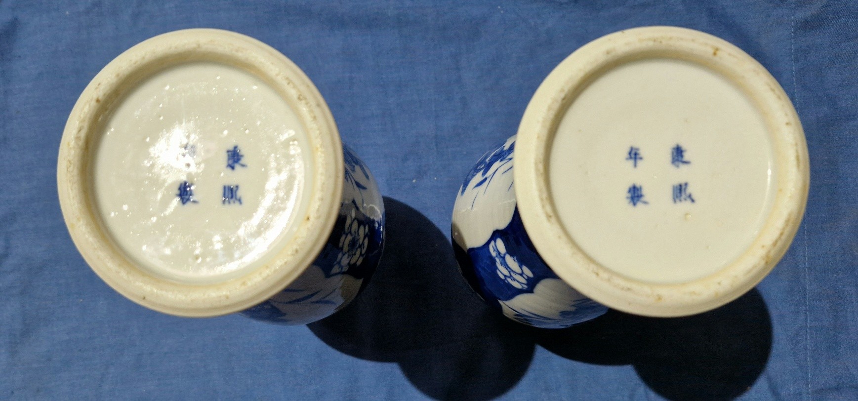 A pair of Chinese porcelain vases, each bearing four character Kangxi mark to base, height 26cm.