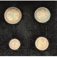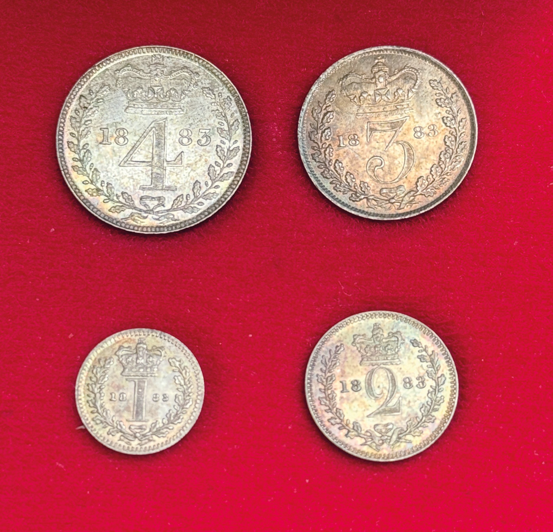 UK QV 1883 complete x4 coin silver Maundy set, comprising 1d, 2d, 3d, 4d, in good condition