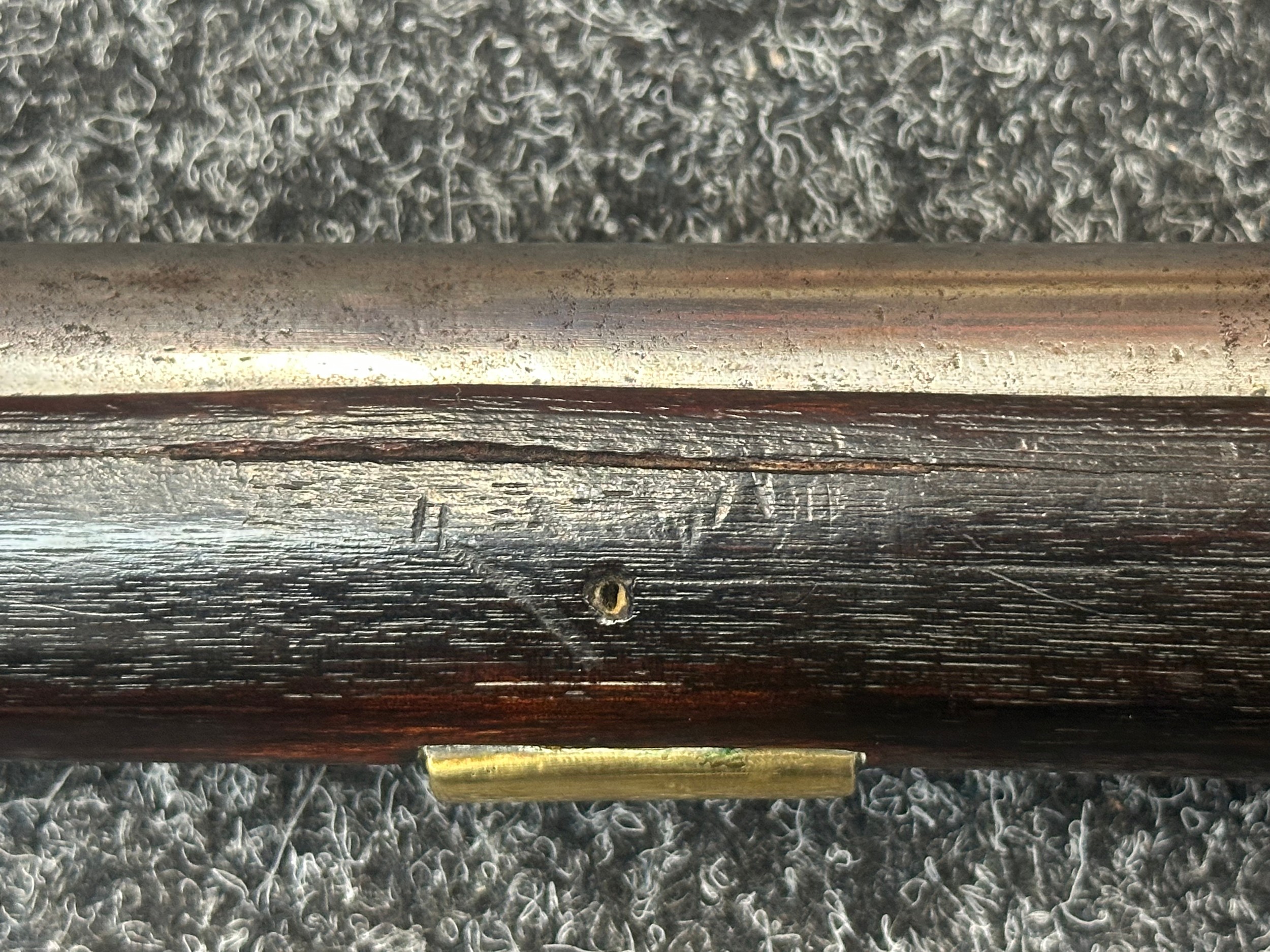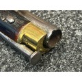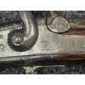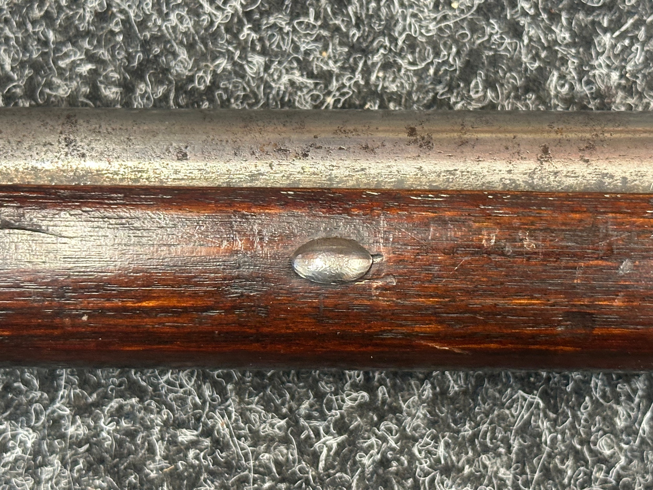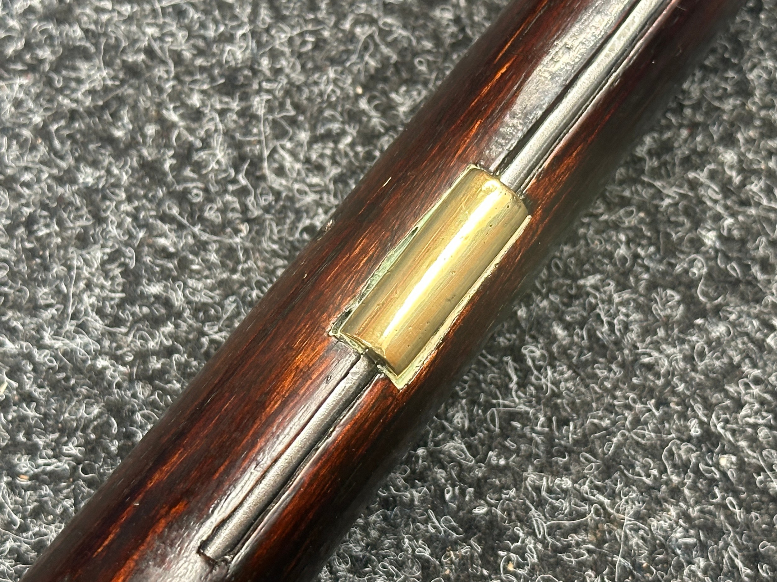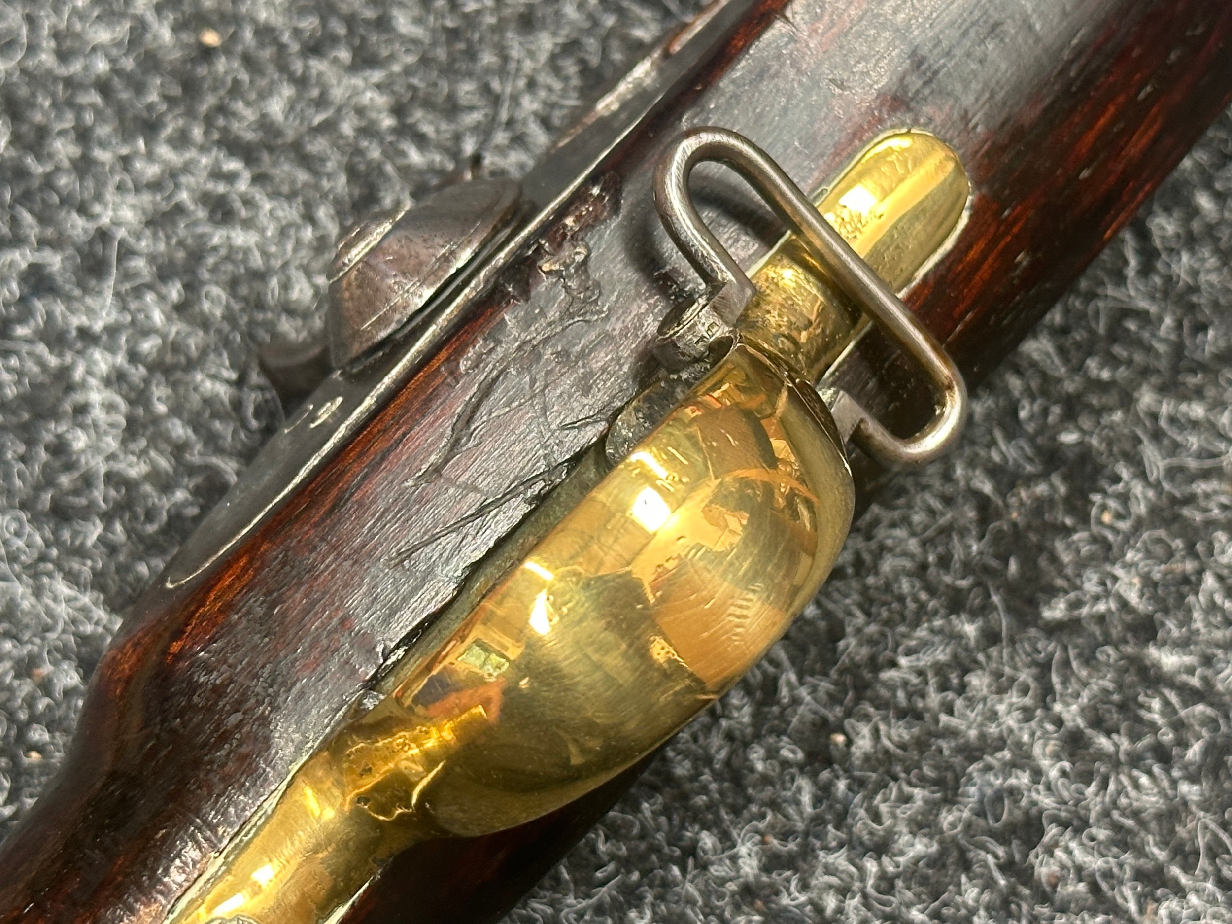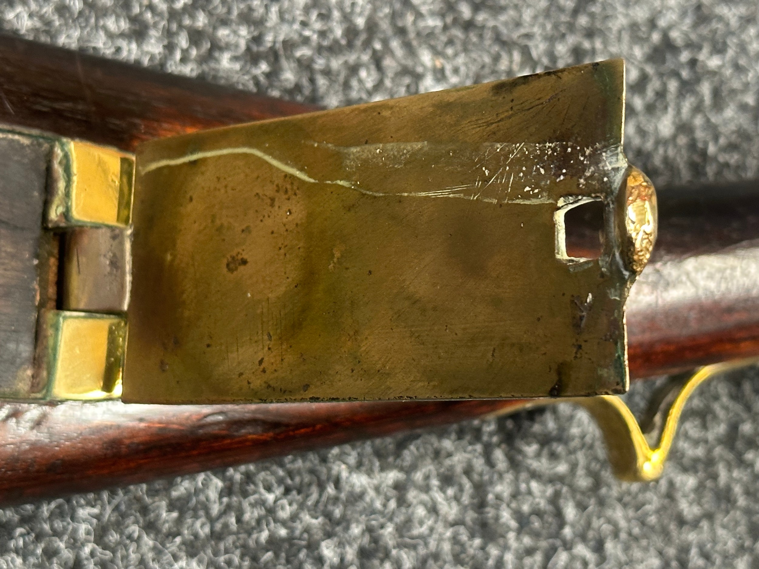 British P-1847 2nd Pattern Side Action Lock Brunswick 2-Groove Percussion Cap Rifle bearing the British East India Company "Rampant Lion" marking on the lock plate. Action a/f does not hold at either half or full cock. Two position flip up sight. Brass fittings. Barrel length 750mm. Overall length 115.5cm. Complete with ramrod. NOTE: Section 58 (2) No licence required in the UK.