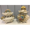 The larger has very minor damage (flower break, two pieces inside tureen) & the smaller has been repaired towards the top.