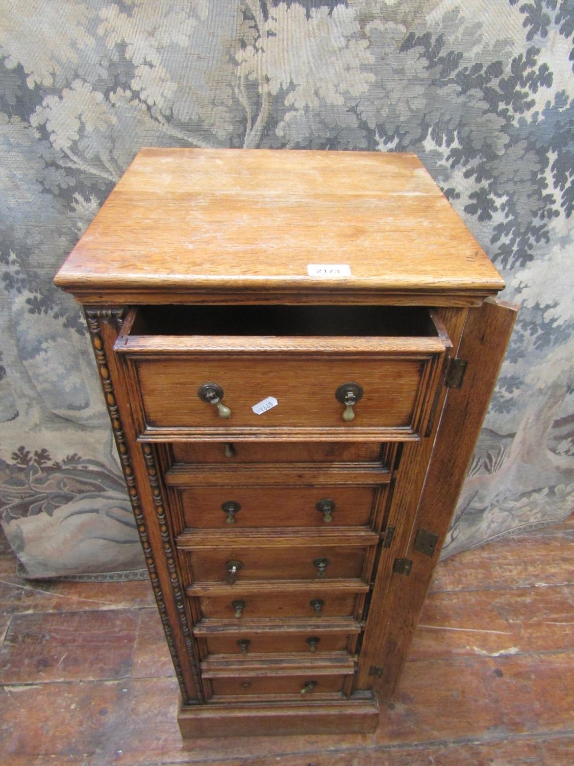 An Edwardian oak Wellington chest comprising seven drawers, ...