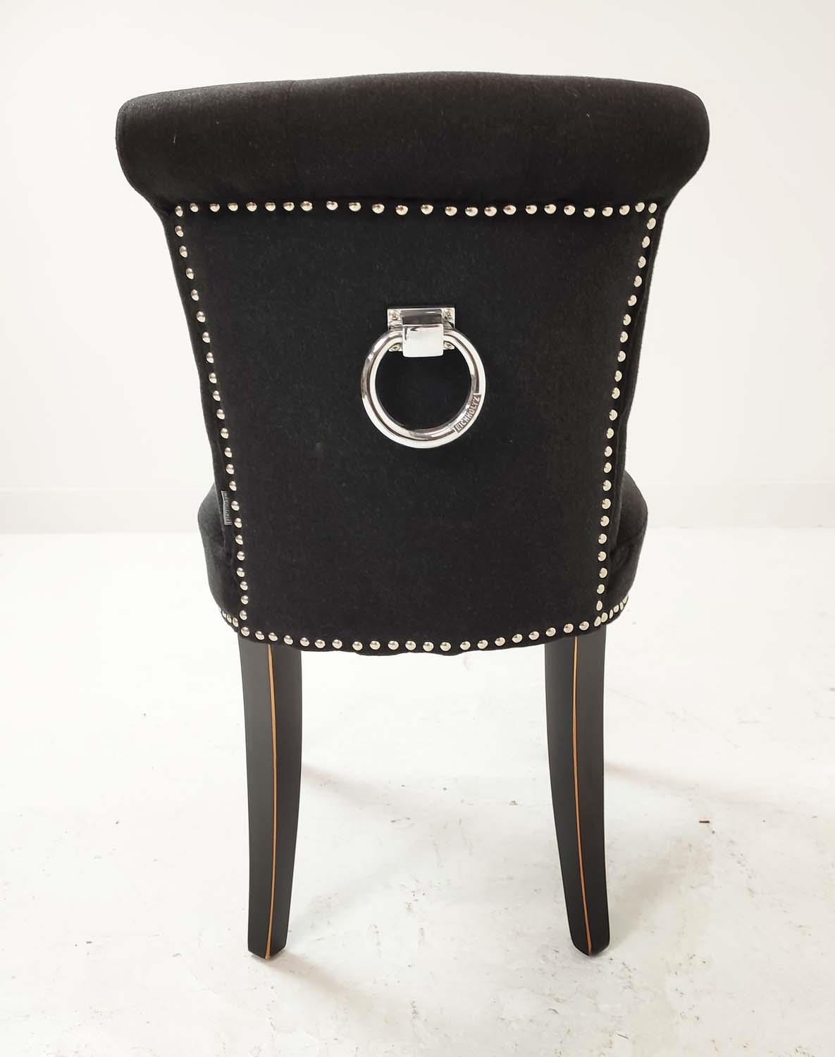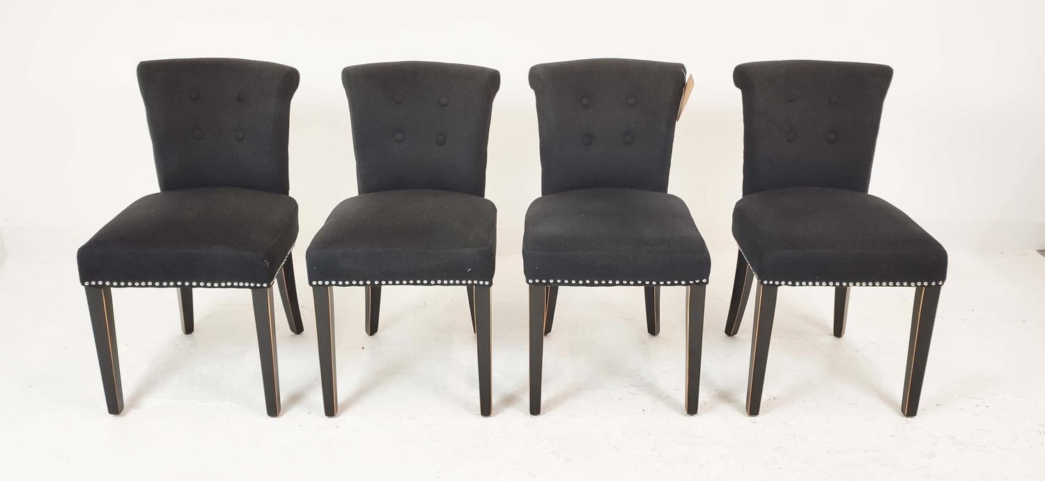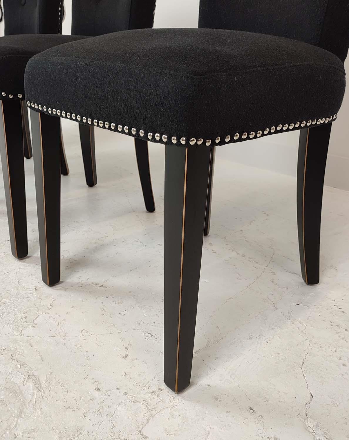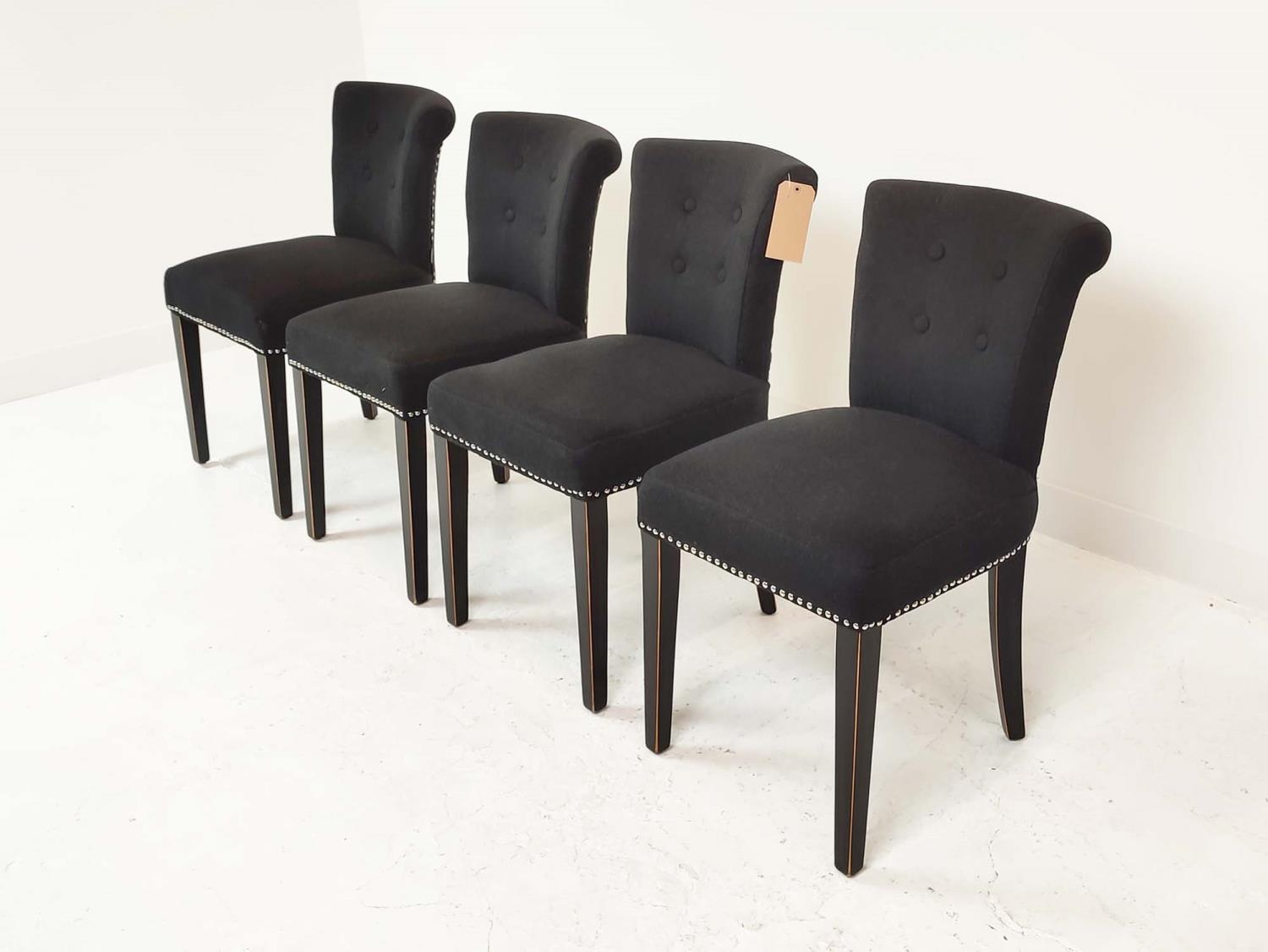 EICHHOLTZ DINING CHAIRS, a set of four, with black upholstery and studded detail, 66cm H x 48cm W x 56cm H. (4)