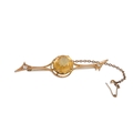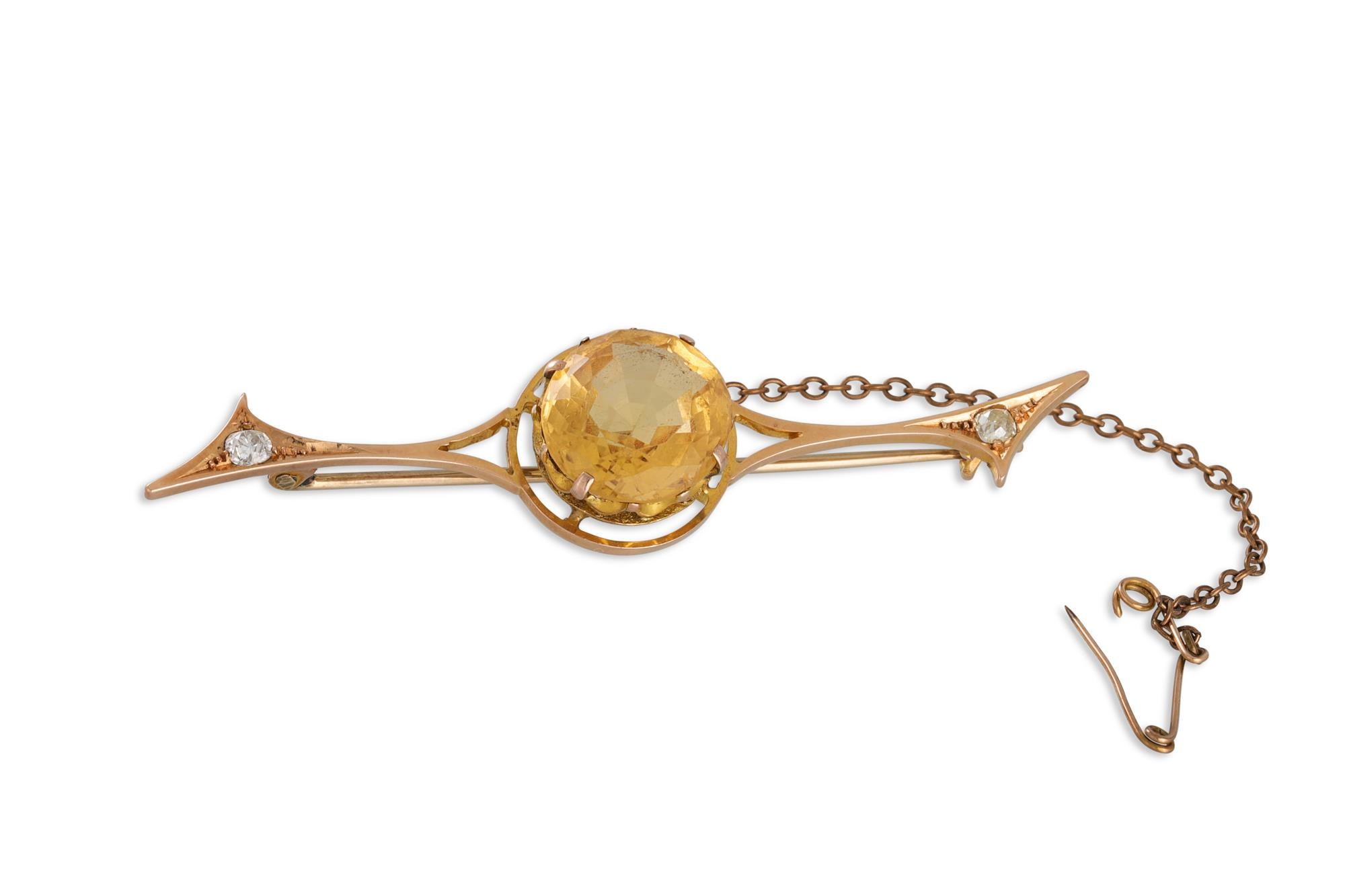 AN ANTIQUE CITRINE AND DIAMOND BROOCH, 15ct gold mounted