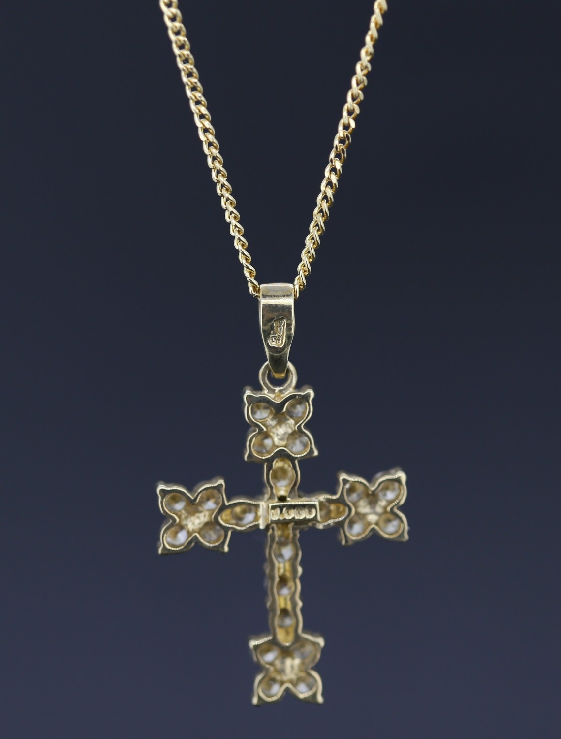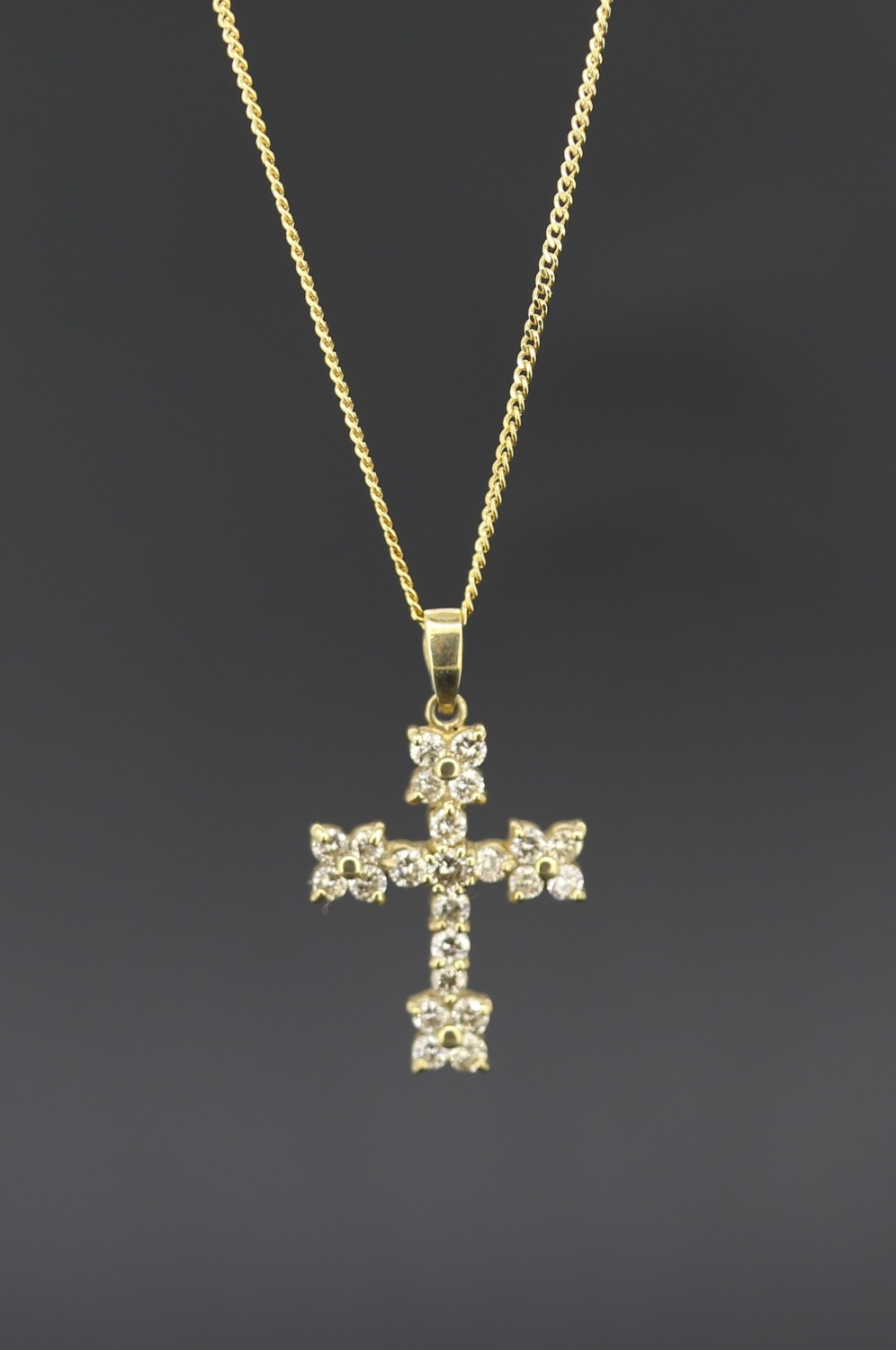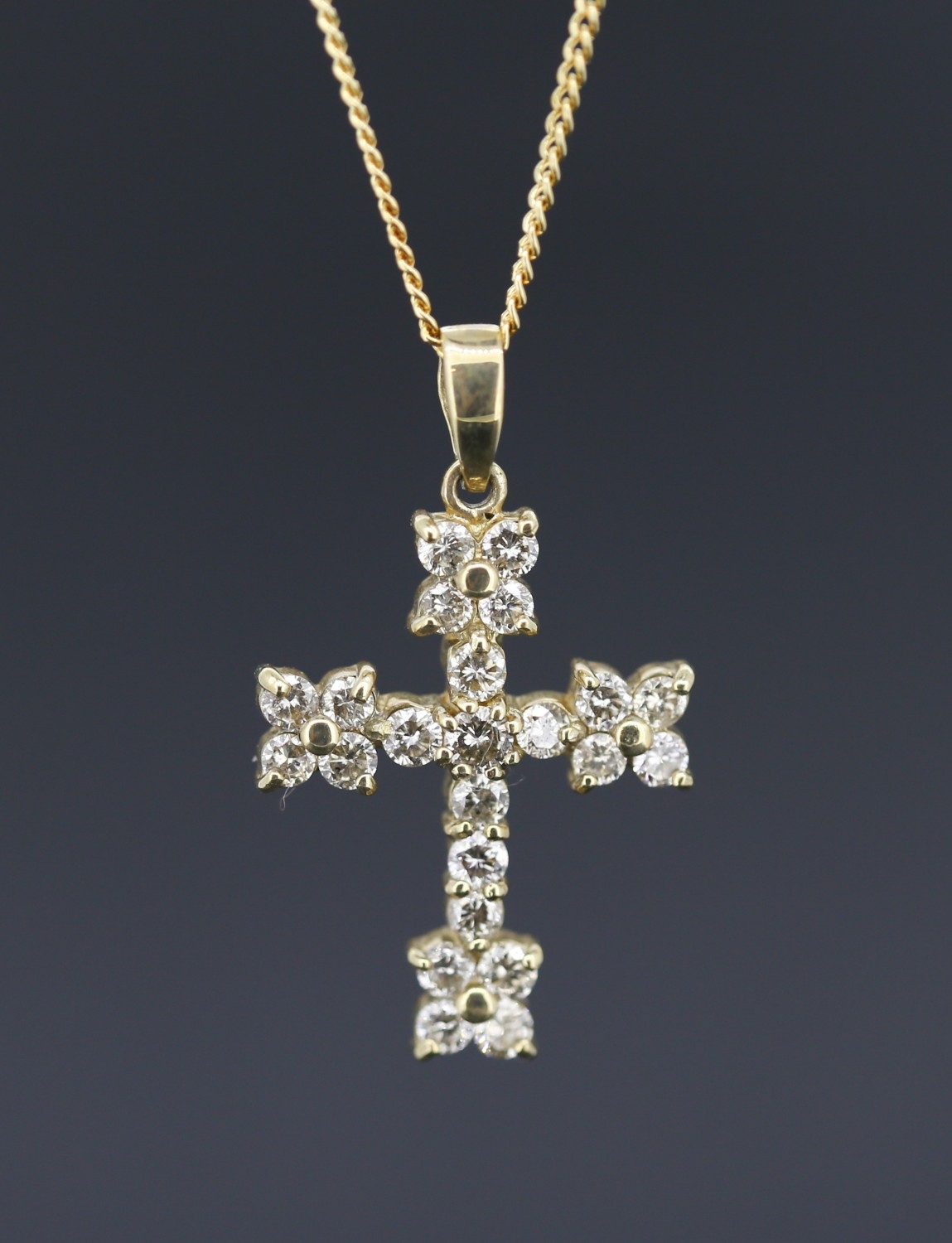 Finely Detailed Diamond Set Cross Pendant Mounted in 18 Carat Yellow Gold 2.5cm Set on 18 Carat Yellow Gold Chain 46cm Long Total Diamond Carat Weight 1ct
