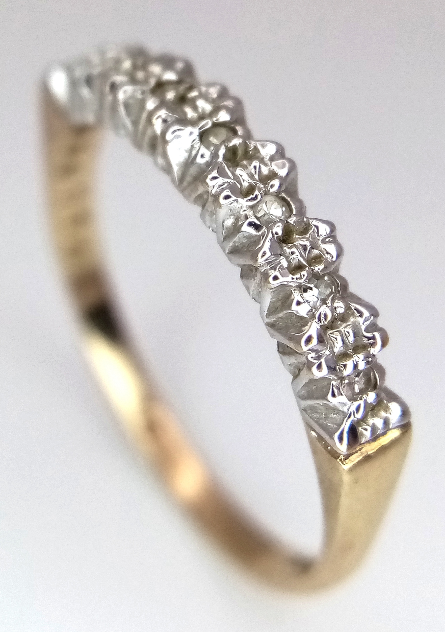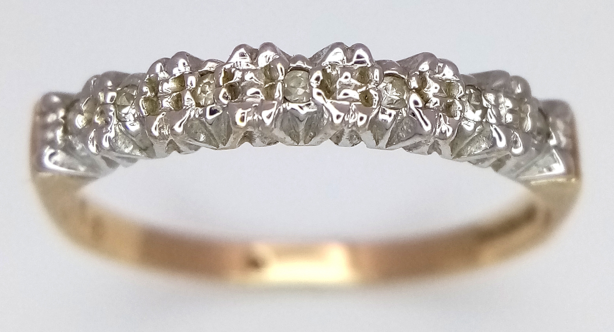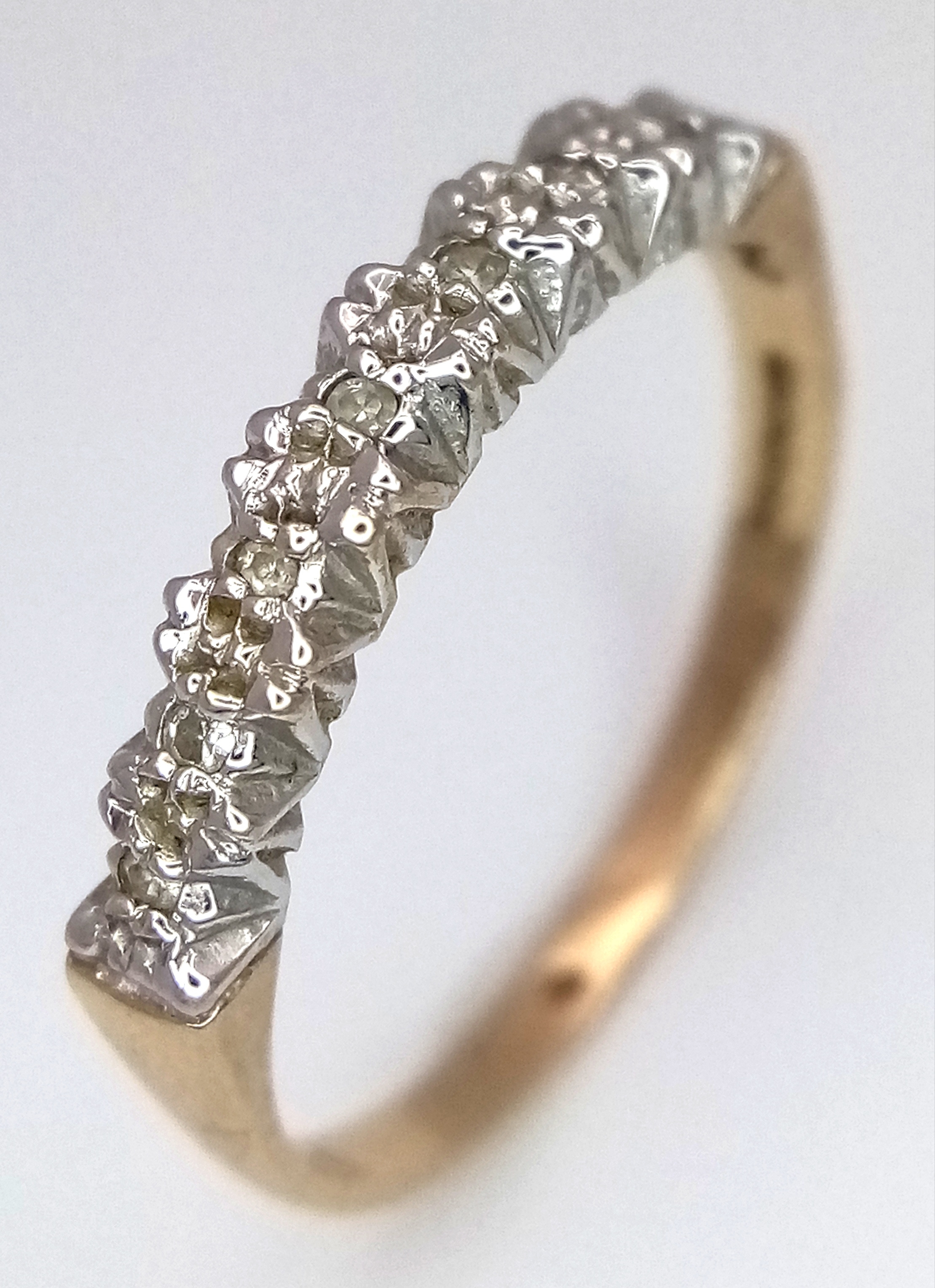 A 9K YELLOW GOLD DIMAOND SET HALF ETERNITY RING 1.6G SIZE O. Ref: SC 7027