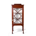 An early 20th Century mahogany display cabinet, with shallow upright above an astragal glazed door panel over square legs with peg feet, height 139cm, width 56cm and depth 37cm, some damage and later repair.