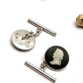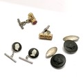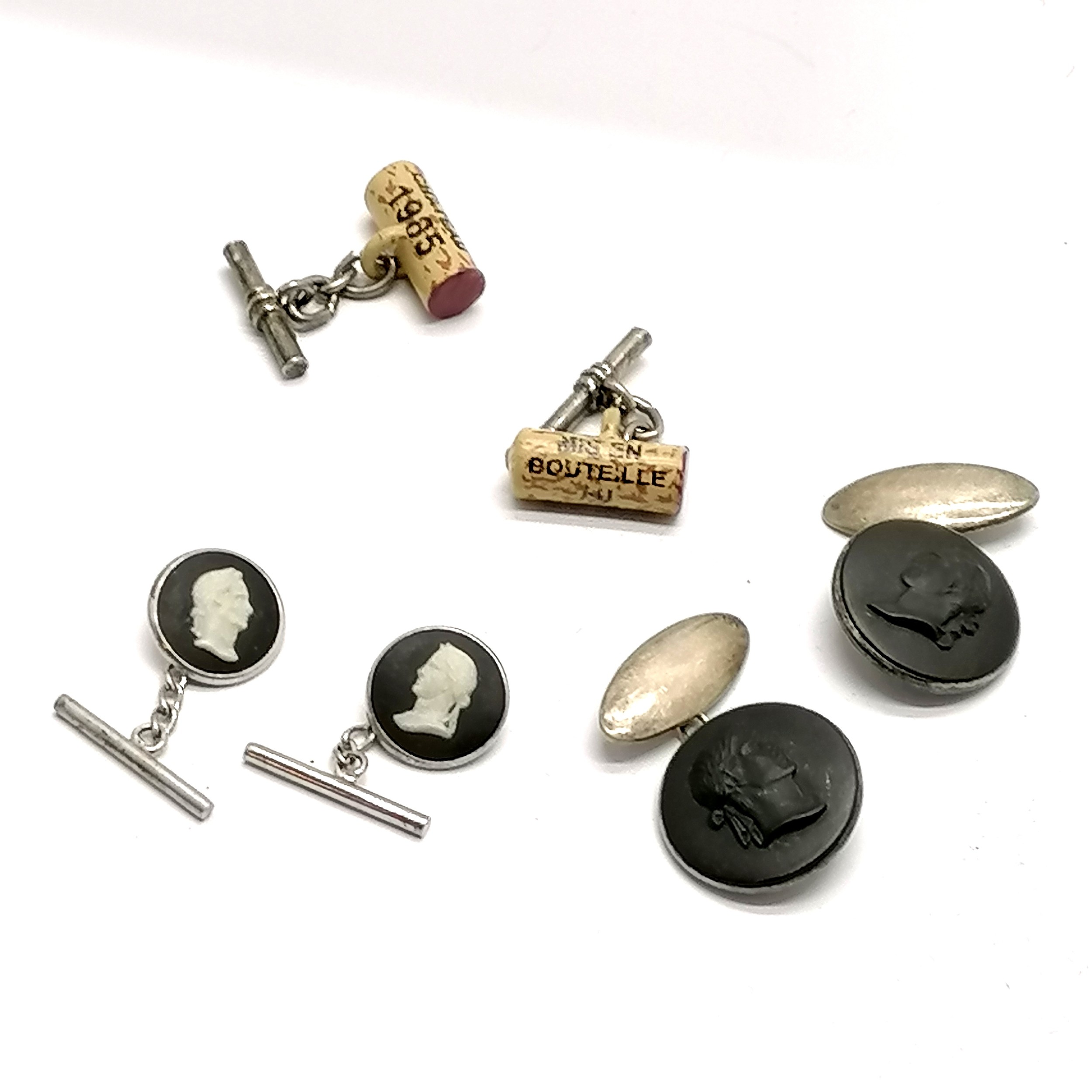 2 x pairs of silver Wedgwood cufflinks - largest 2cm (1 has cracked panel) ~ total weight 12.9g t/w pair of 1985 dated wine cork design cufflinks