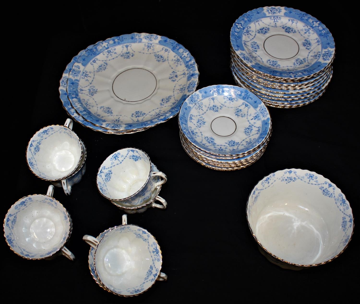 32 PIECES ROYAL ALBERT (2478) BLUE & WHITE PART TEAS SET COMPRISING 9 CUPS, 8 SAUCERS, 12 SIDE PLATES, 2 SANDWICH PLATES & BOWL