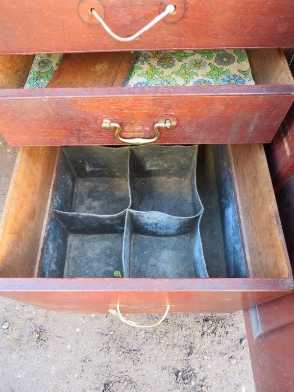 Condition report: Minor marks consistent with age. Two drawer handles have been replaced with string. Keys present.