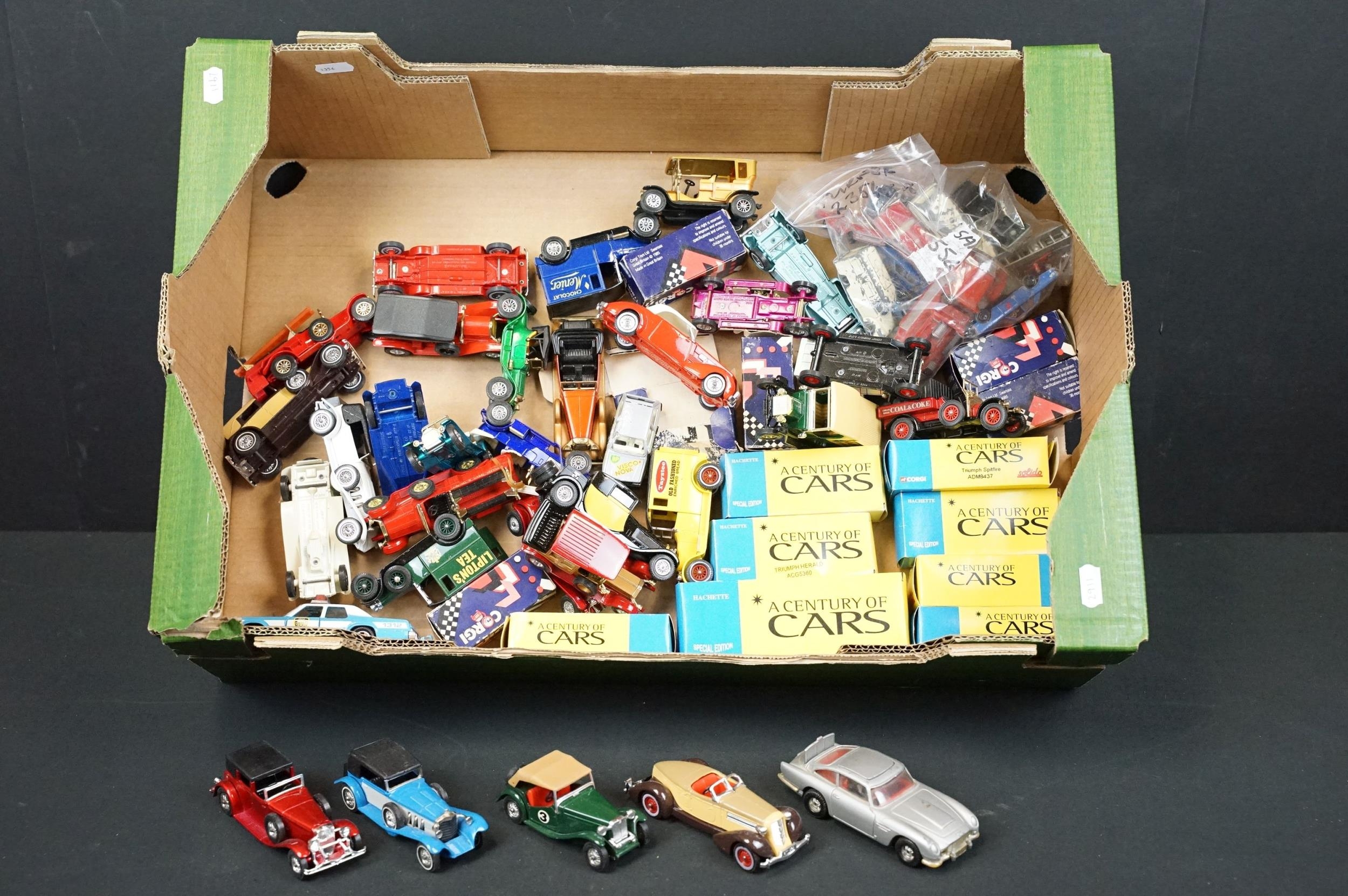 Collection of boxed and unboxed diecast models to include play worn Matchbox 75 Series emergency vehicle models, Matchbox Models Of Yesteryear, Matchbox SuperKings, 8 x boxed A Century of Cars, Corgi James Bond 007 Aston Martin etc