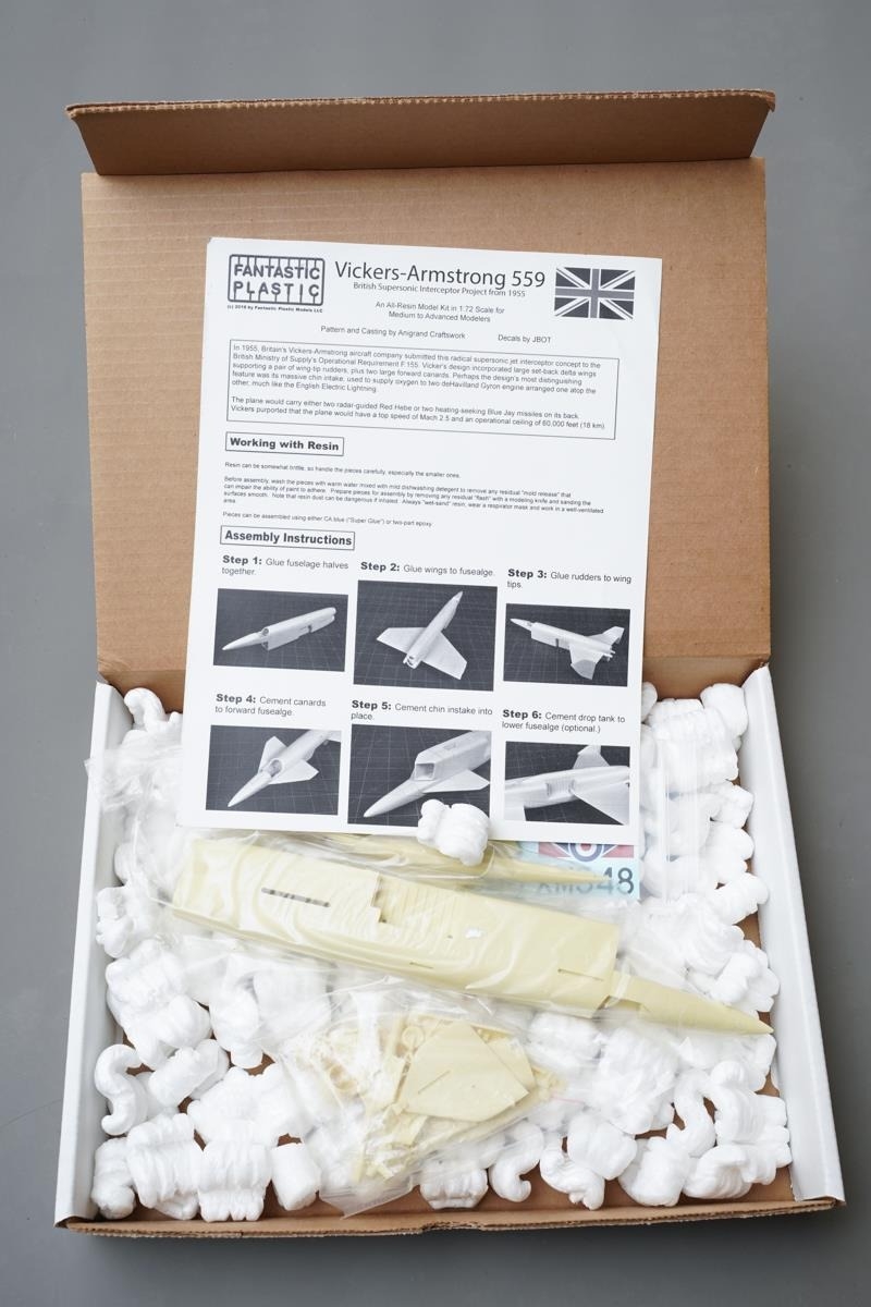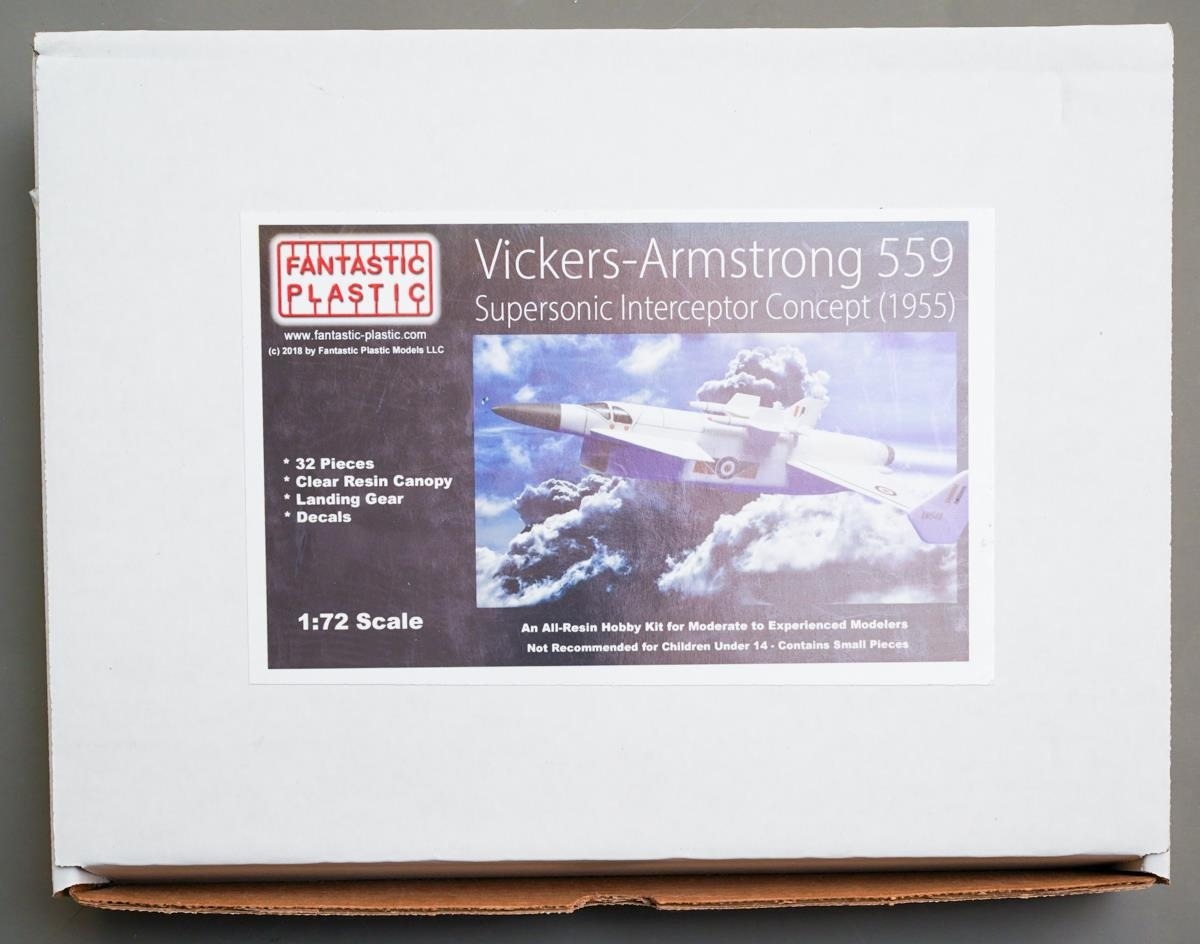 A boxed Fantastic Plastic Hobby Kit 1:72 scale "Vickers-Armstrong 559 Supersonic Interceptor Concept (1955) [1]