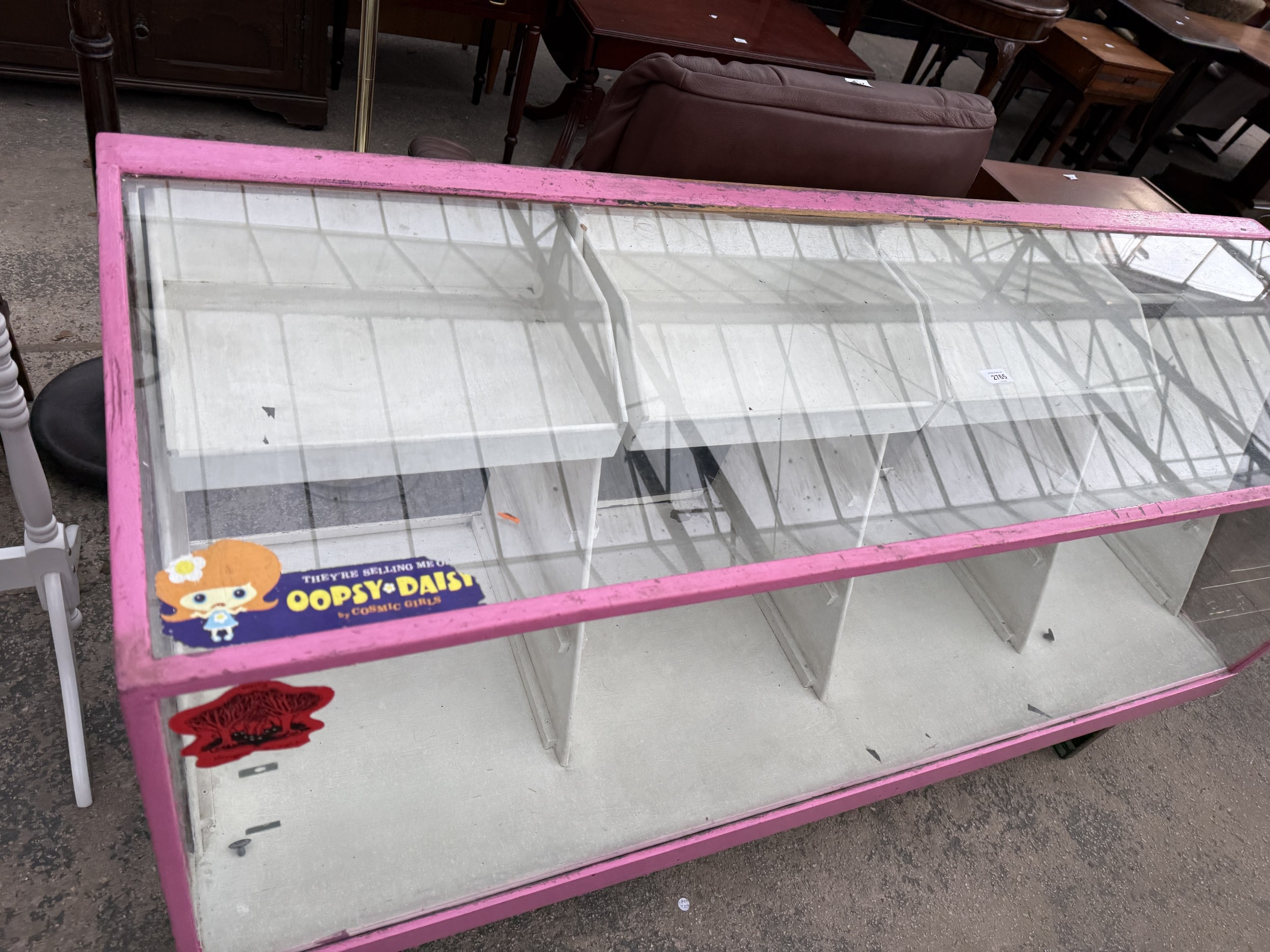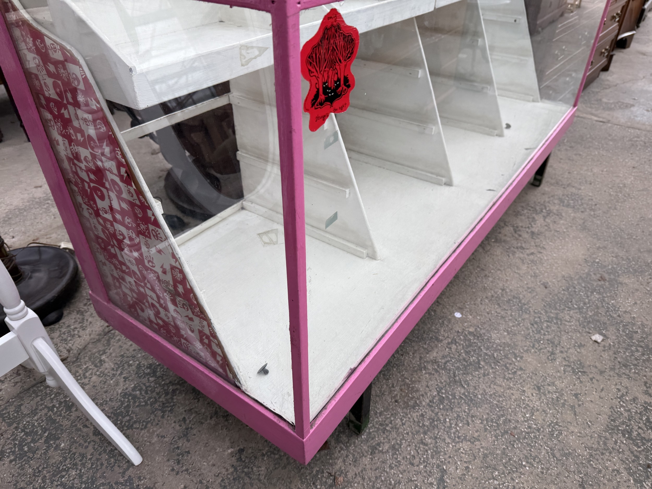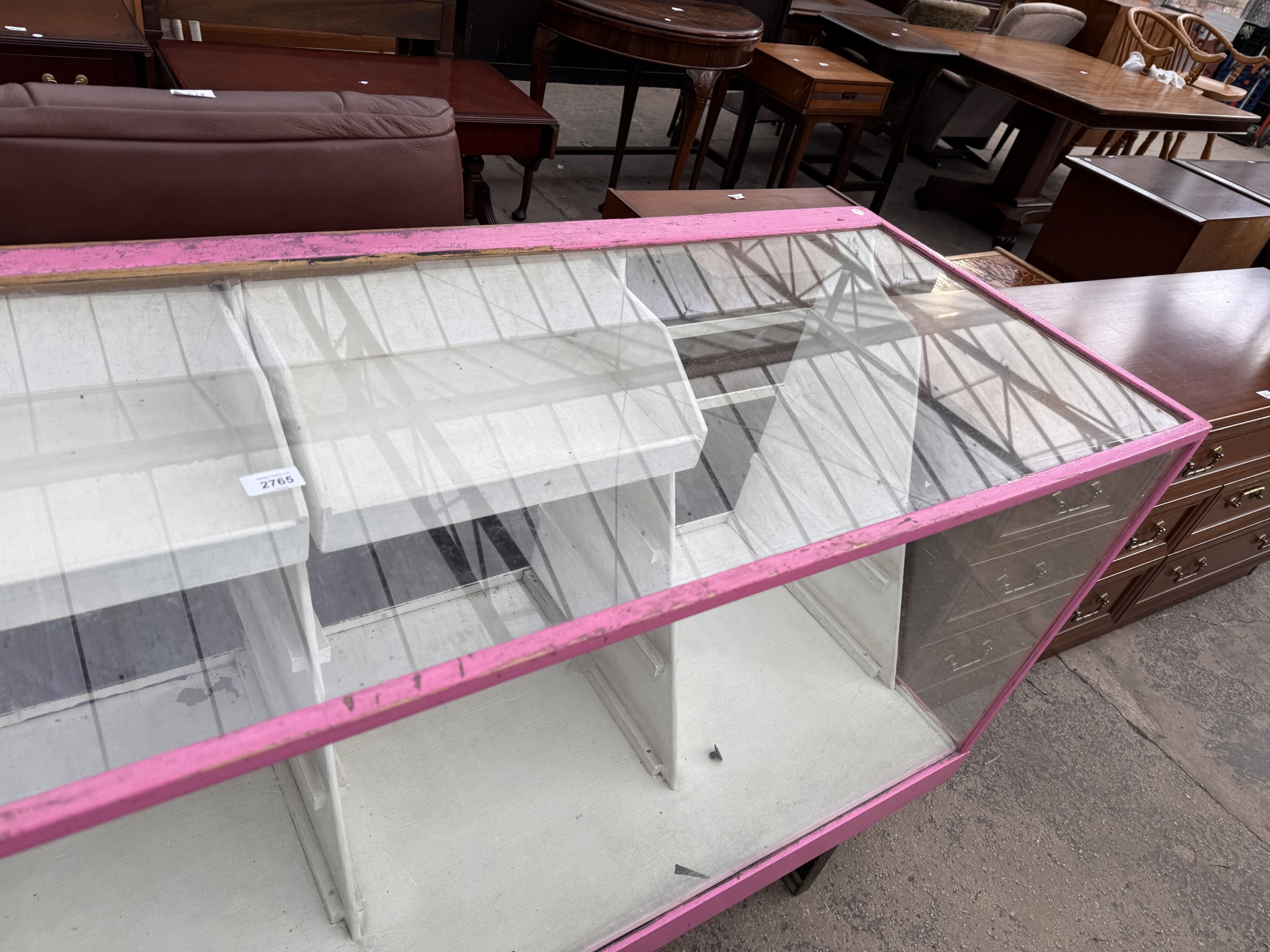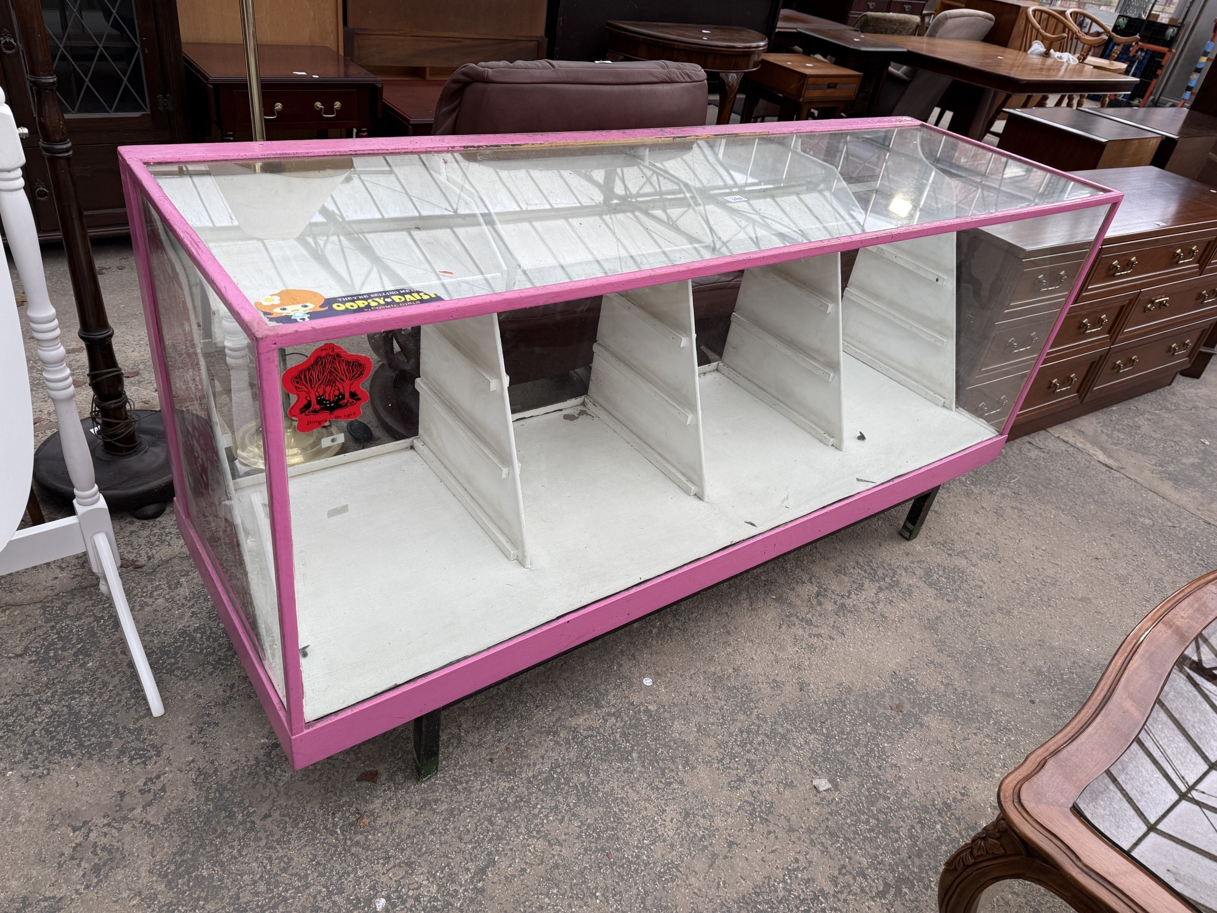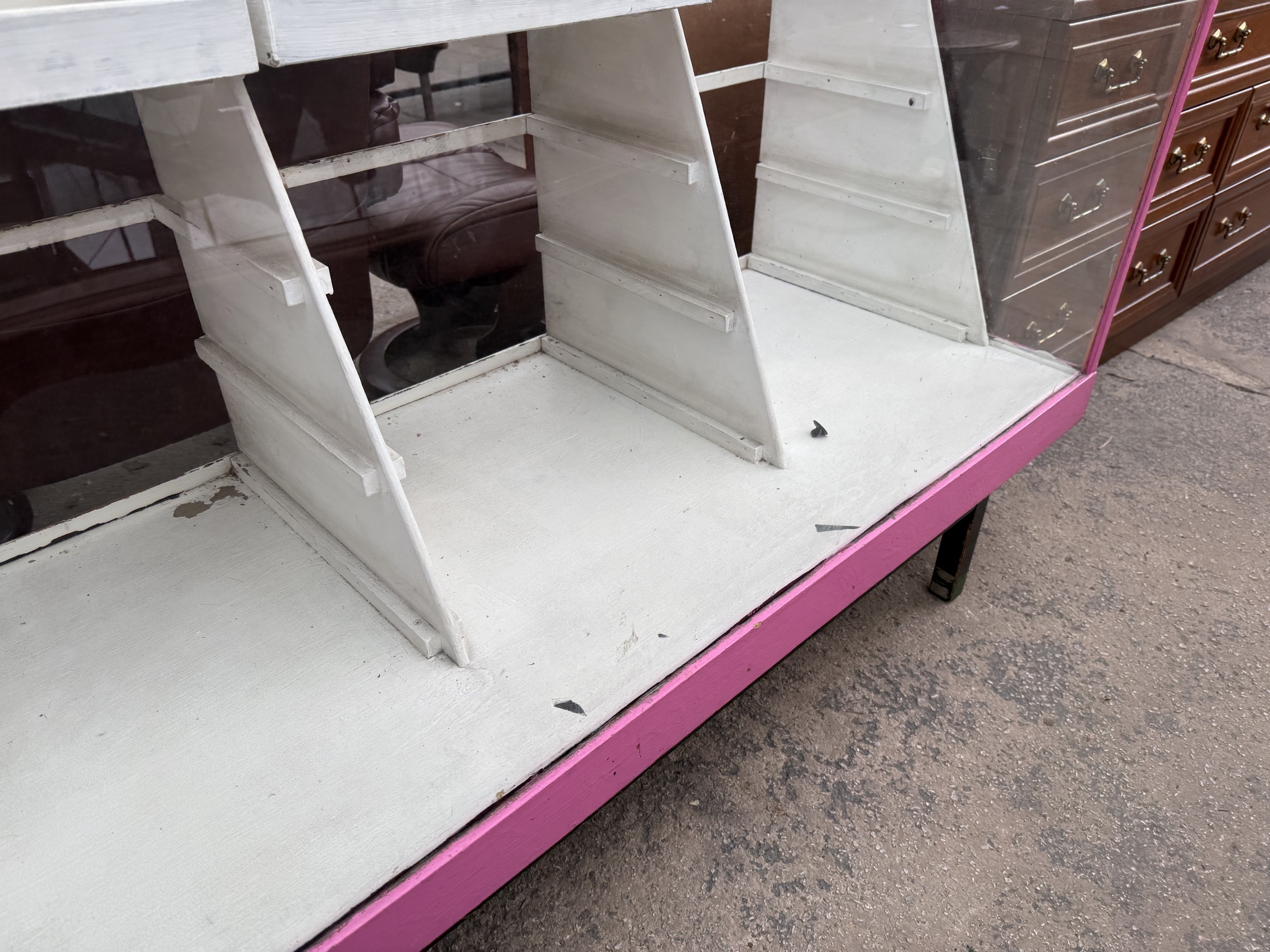 A PAINTED SHOP DISPLAY COUNTER, 71" WIDE