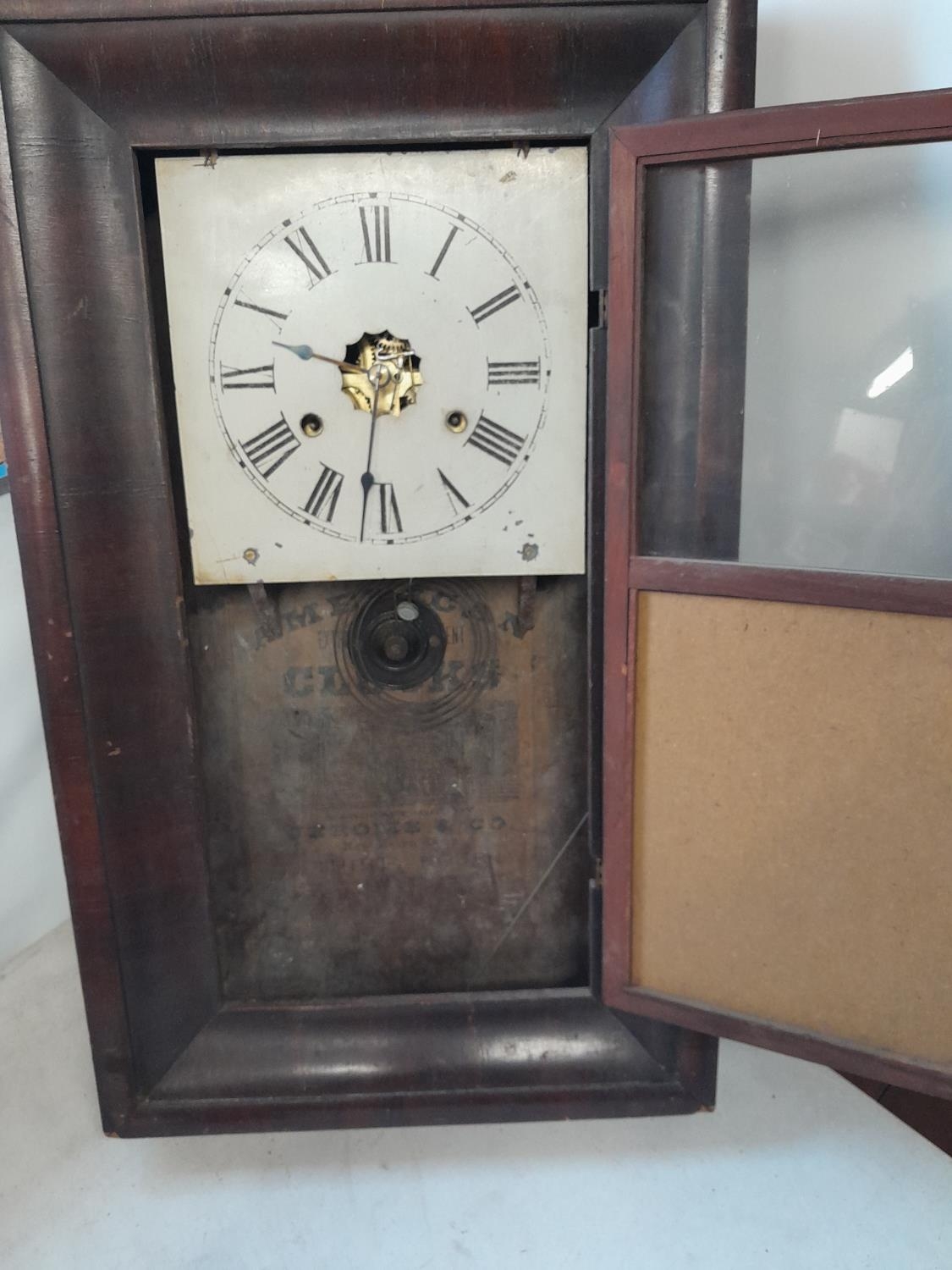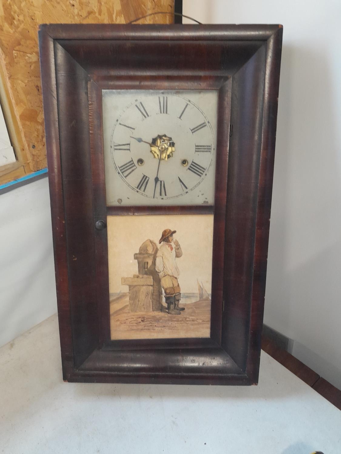 Edwardian American wall clock with inset watercolour