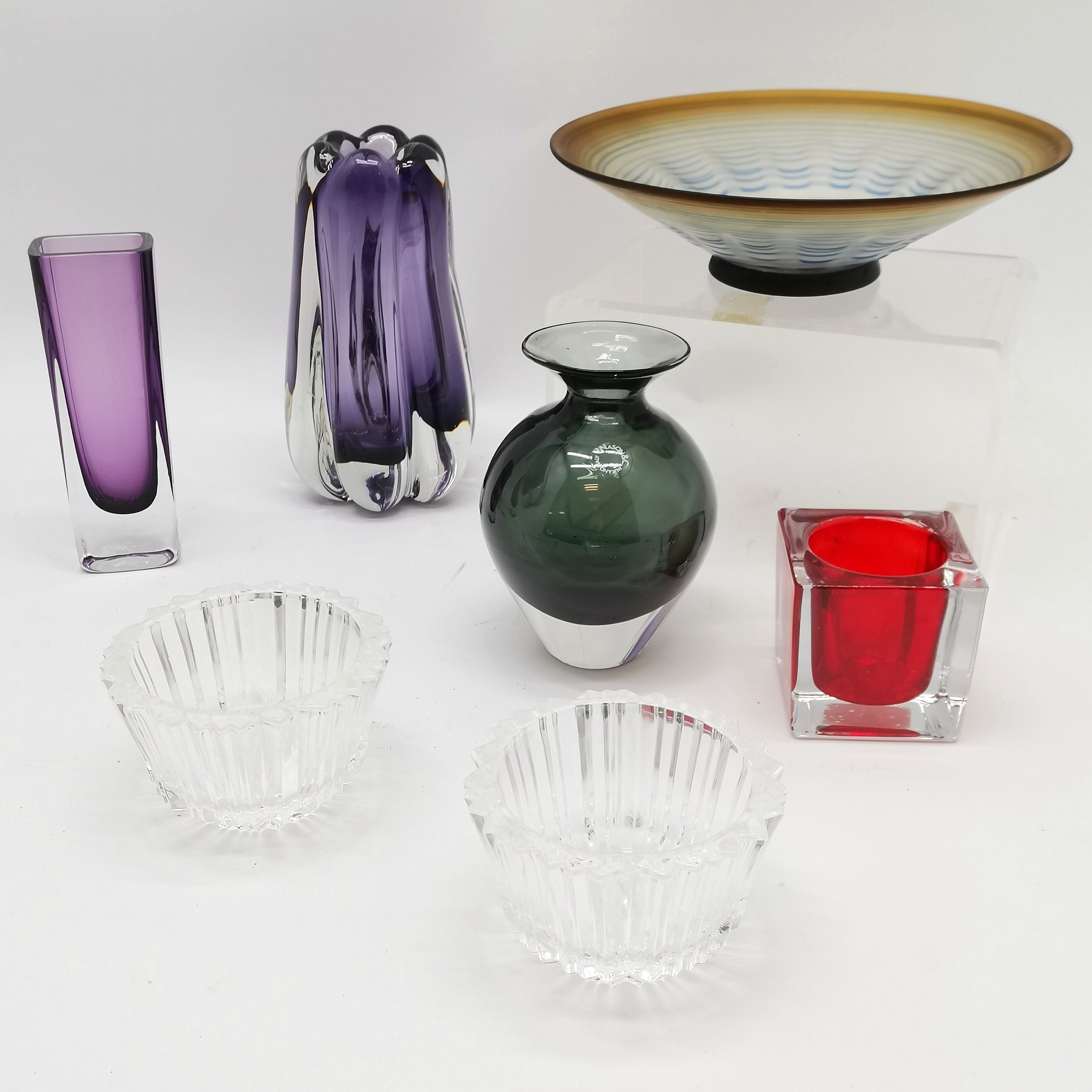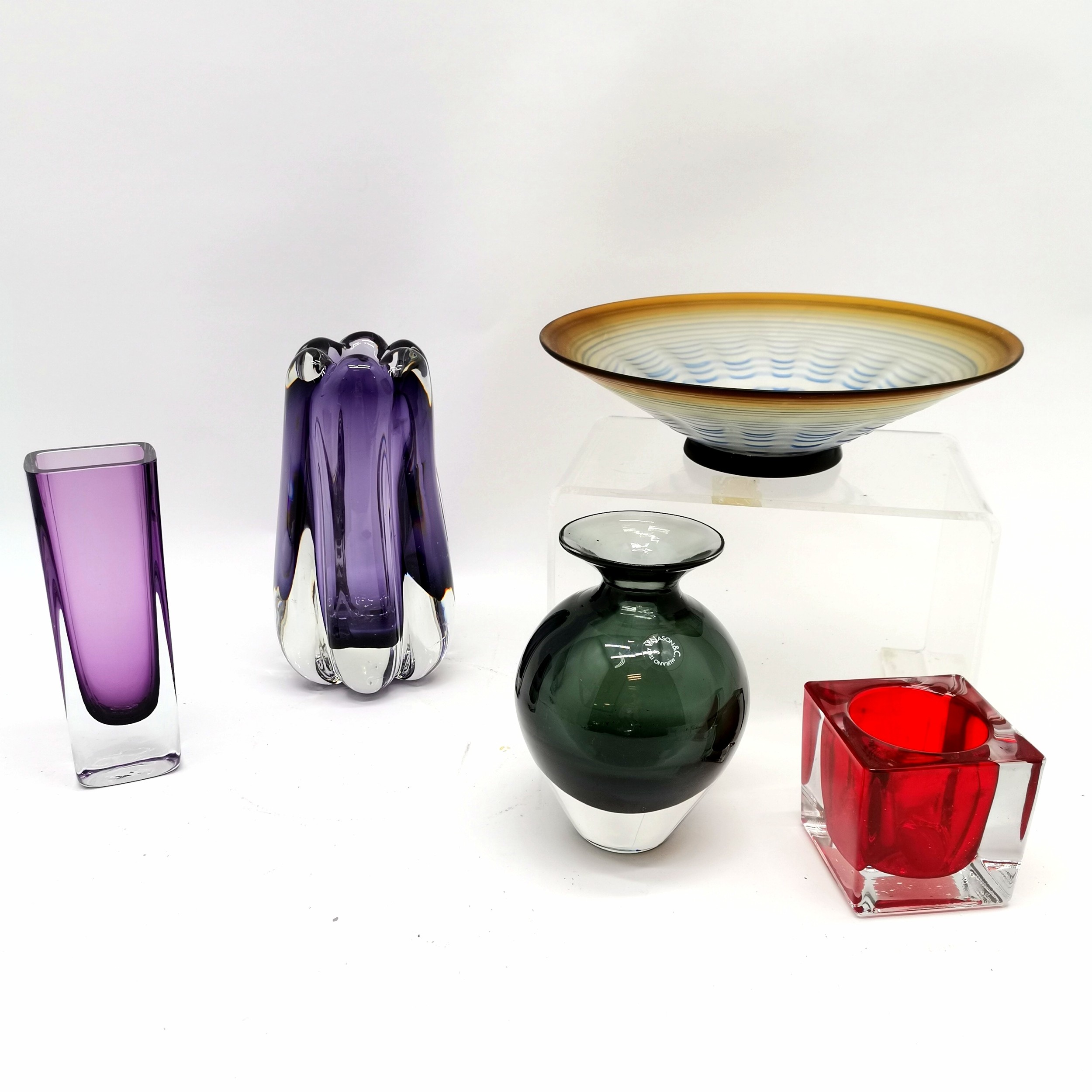 V Nason & C Murano glass vase (16cm) t/w 2 x purple art glass vases etc