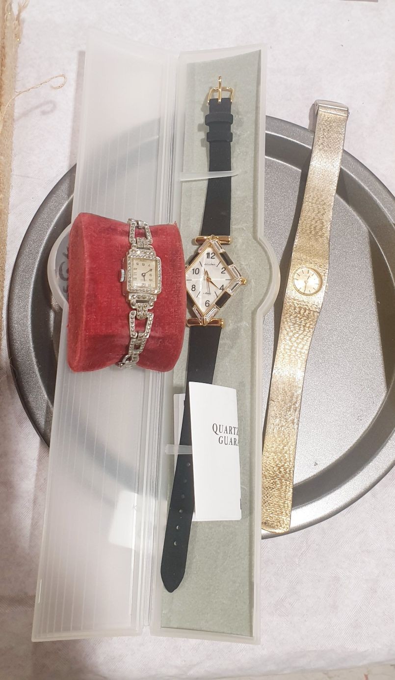 A vintage ladies cocktail watch set with marcasite together with two other ladies watches. UK shipping £14.
