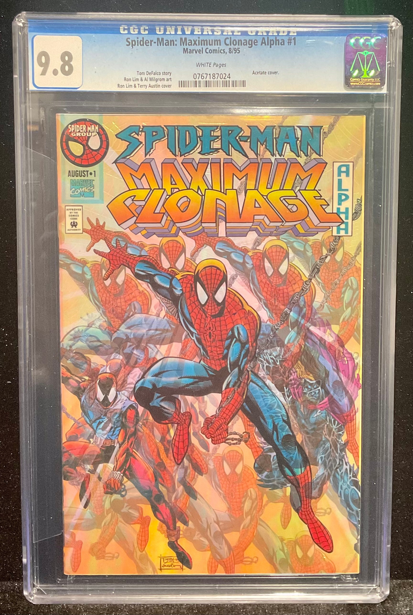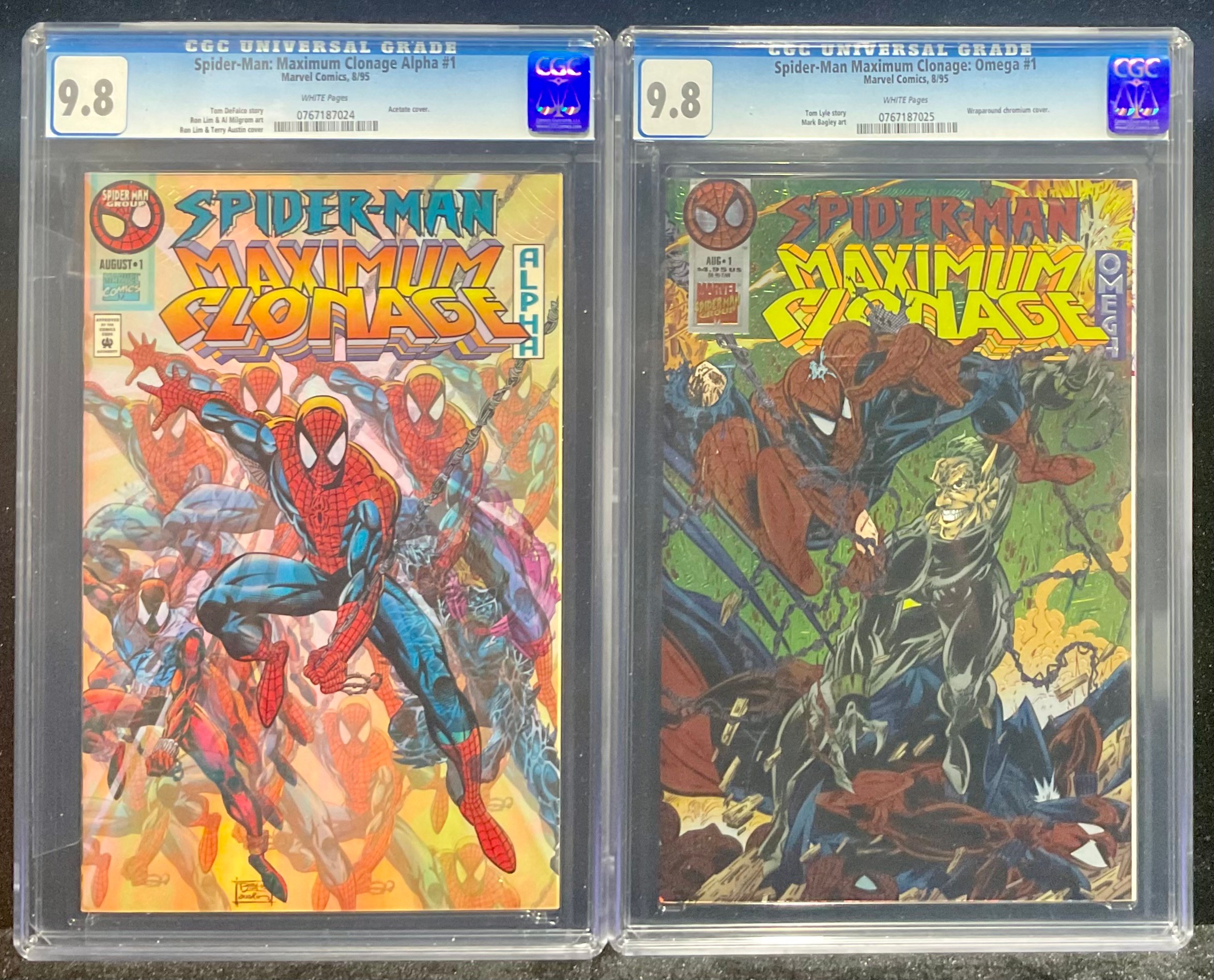 Spider-Man: Maximum Clonage #1 Alpha and Omega chromium wraparound and acetate covers (1995) CGC graded 9.8. Modern Age Marvel comics (2)