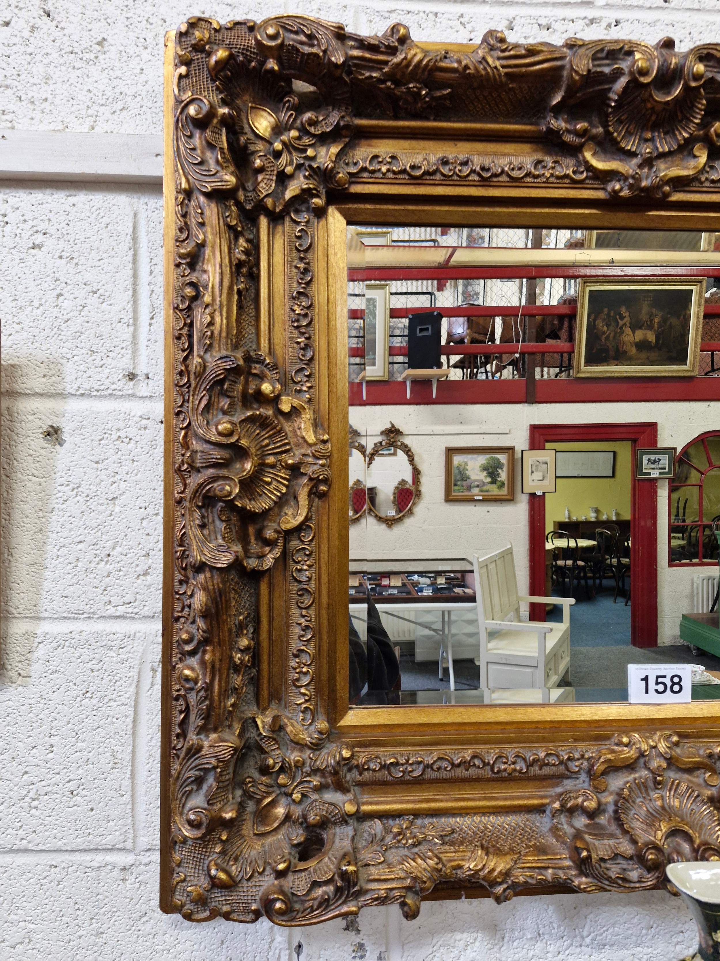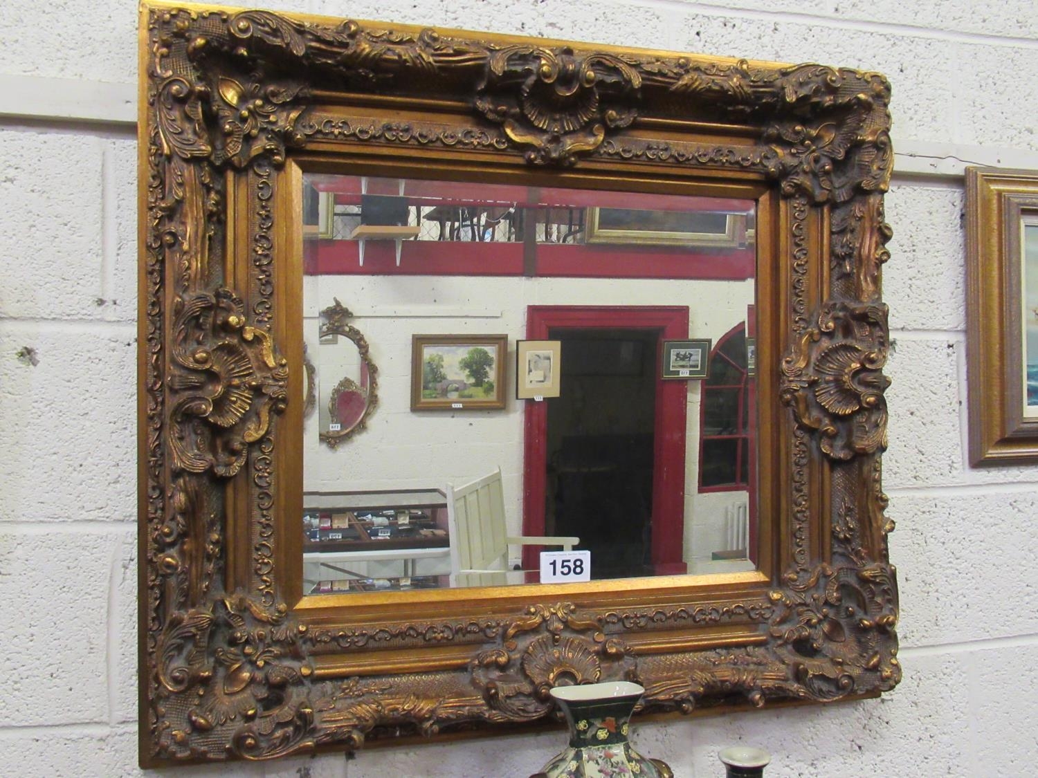 Ornate Gilt framed bevelled edge wall mirror. 85cm x 96cm, ...