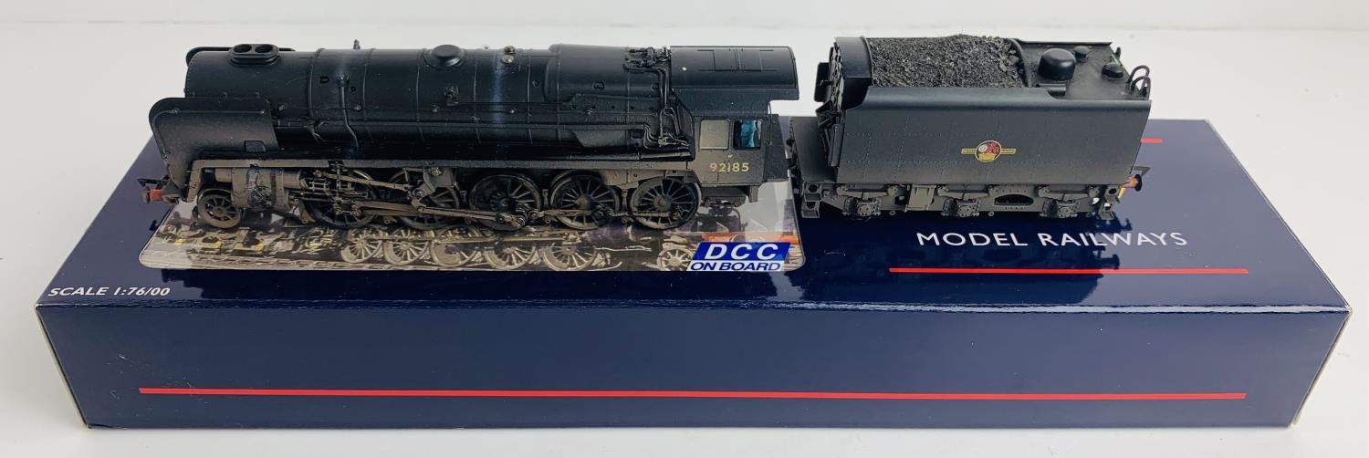 Bachmann OO Gauge 32-858DC 9F 2-10-0 Standard 92185 BR Black L/Crest D/Chimney BR1F Tender 'Weathered' Loco - Boxed. P&P Group 2 (£18+VAT for the first lot and £3+VAT for subsequent lots)