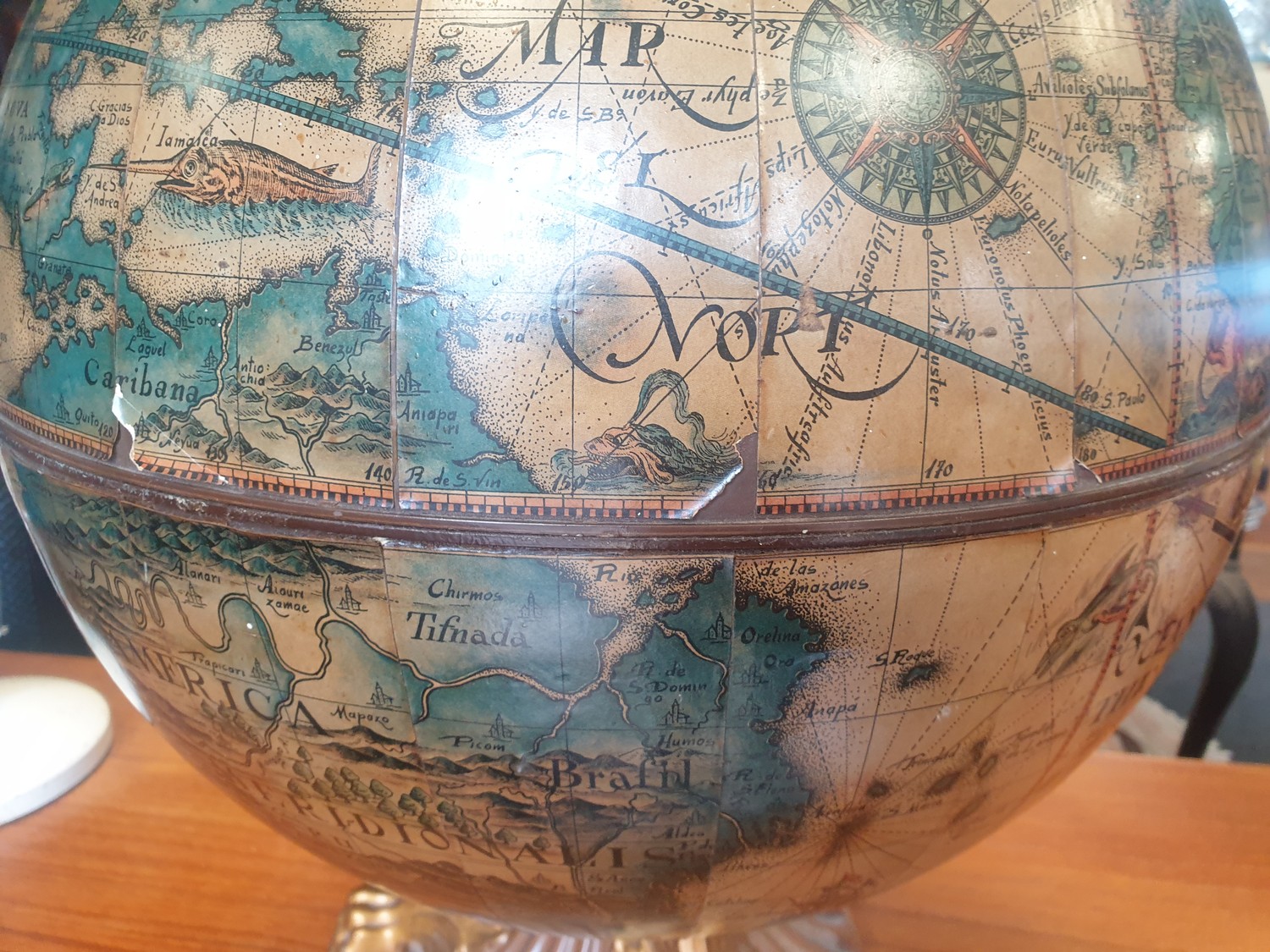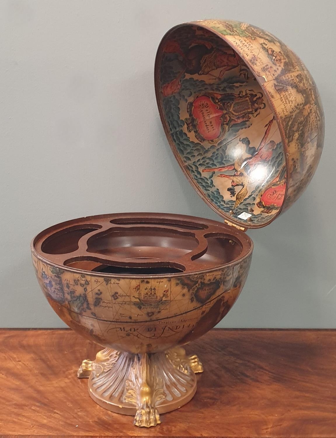 Table Top Globe Drinks Cabinet, H:55 x D:45cm