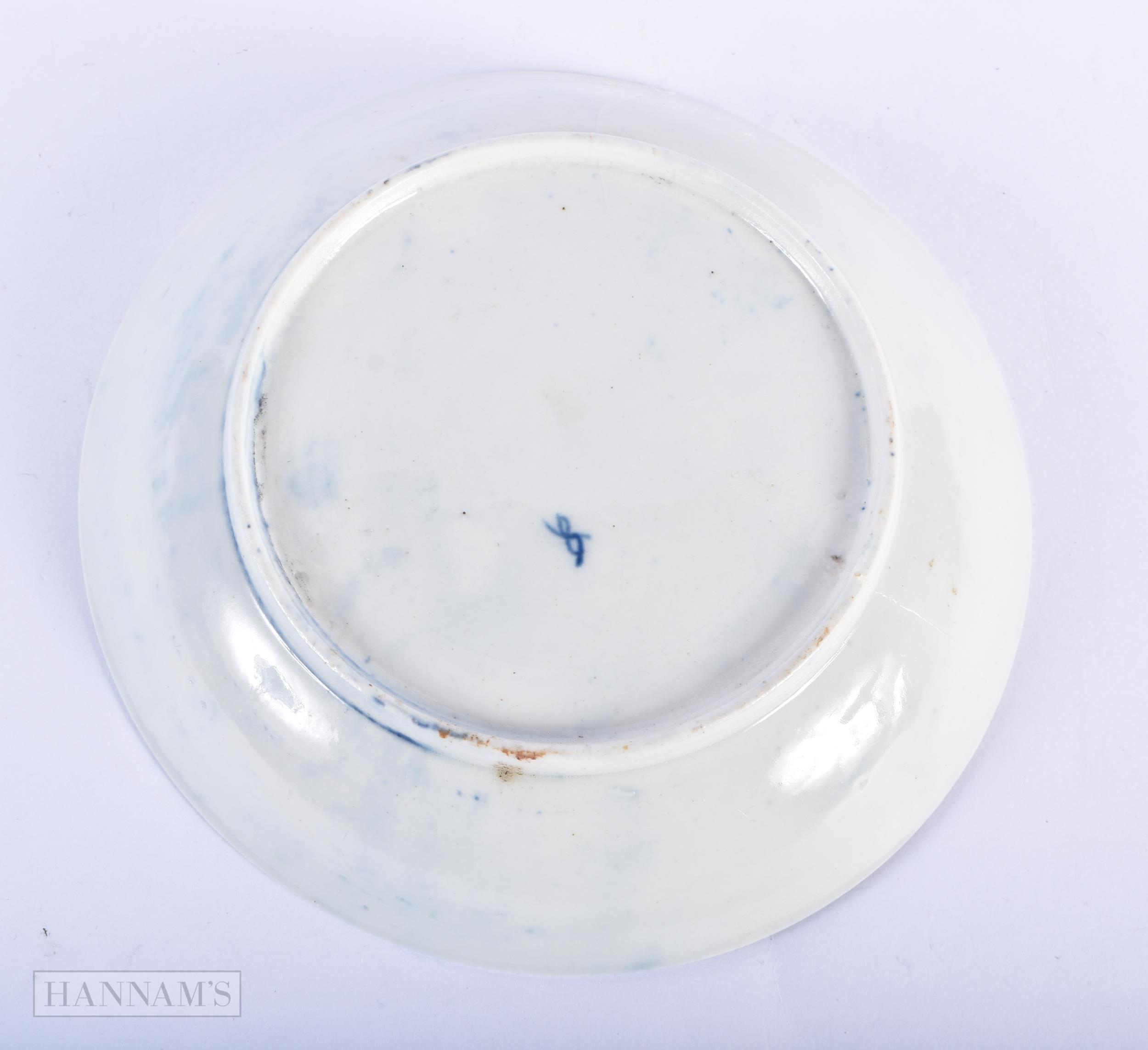 18th century Worcester scarce full size saucer painted with the Rock Warbler pattern, this pattern is more often scene in miniature. 12.5 cm diameter
