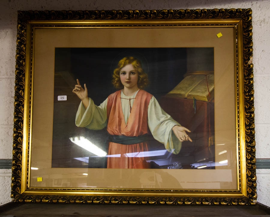 LARGE ORNATE FRAMED PRINT OF JESUS IN THE TEMPLE AF 100W X 85H CM