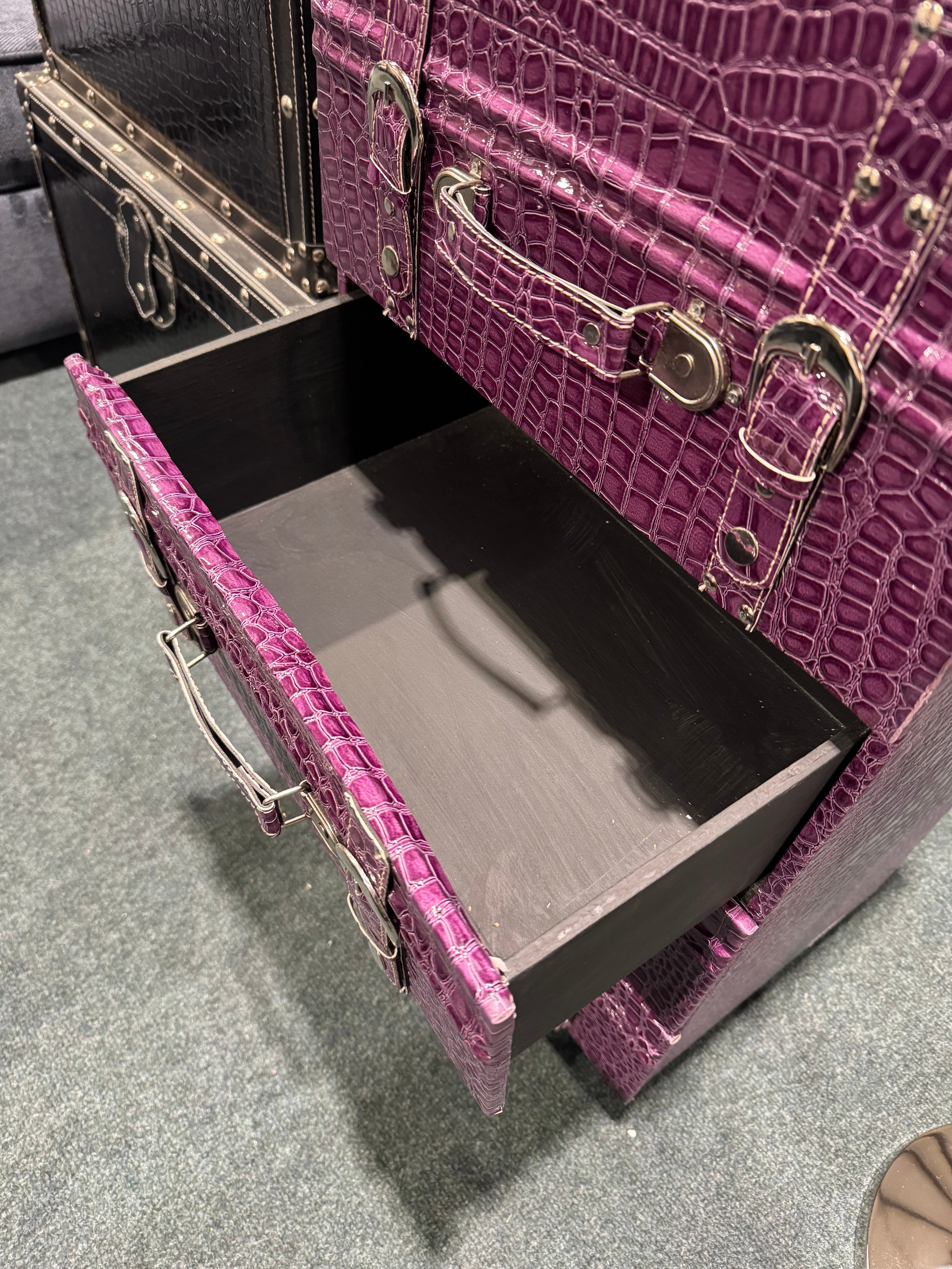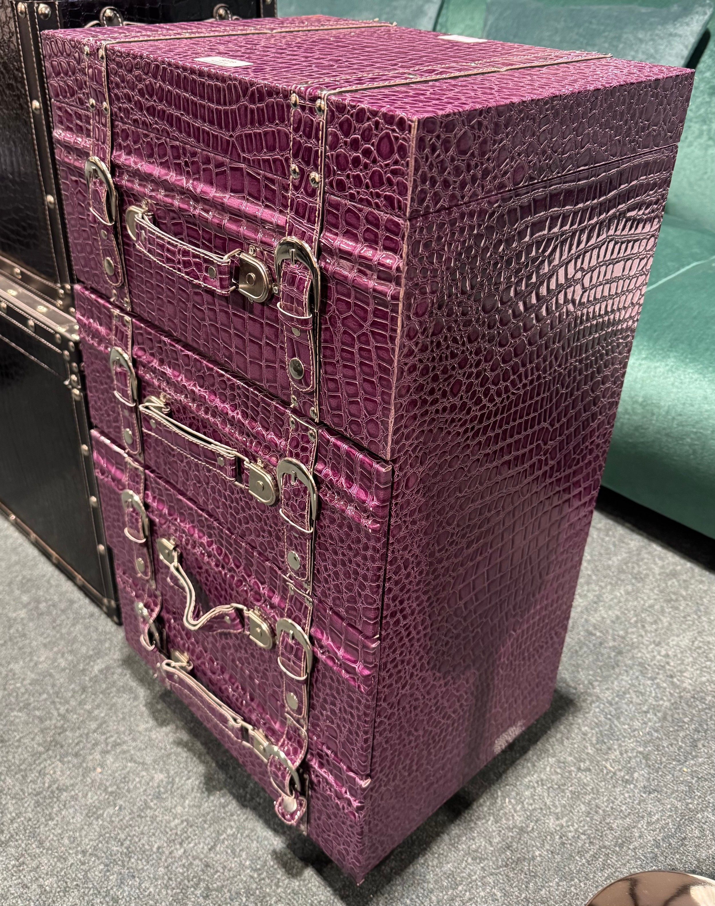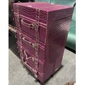 A purple faux crocodile stain storage chest