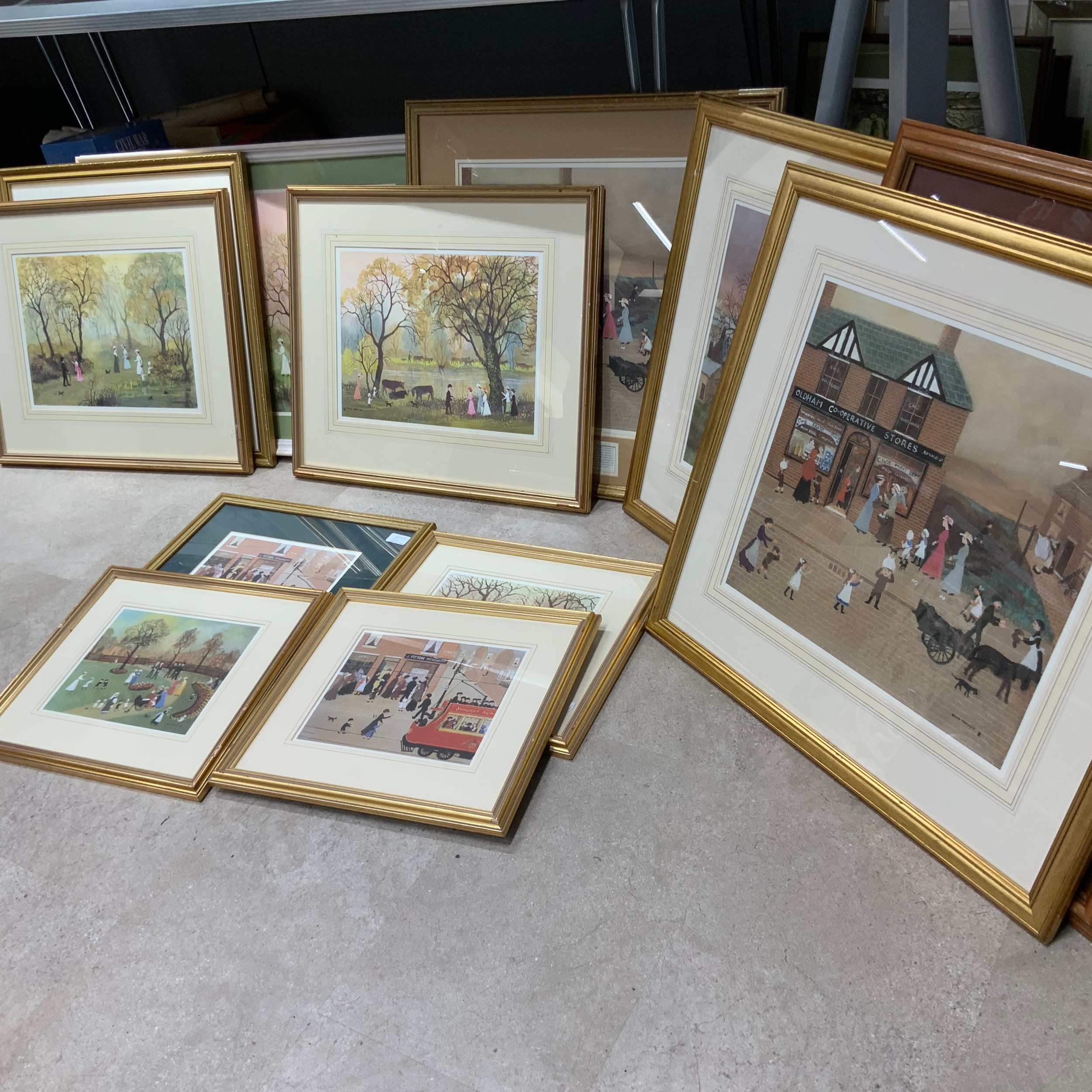 Collection of Helen Bradley framed prints.