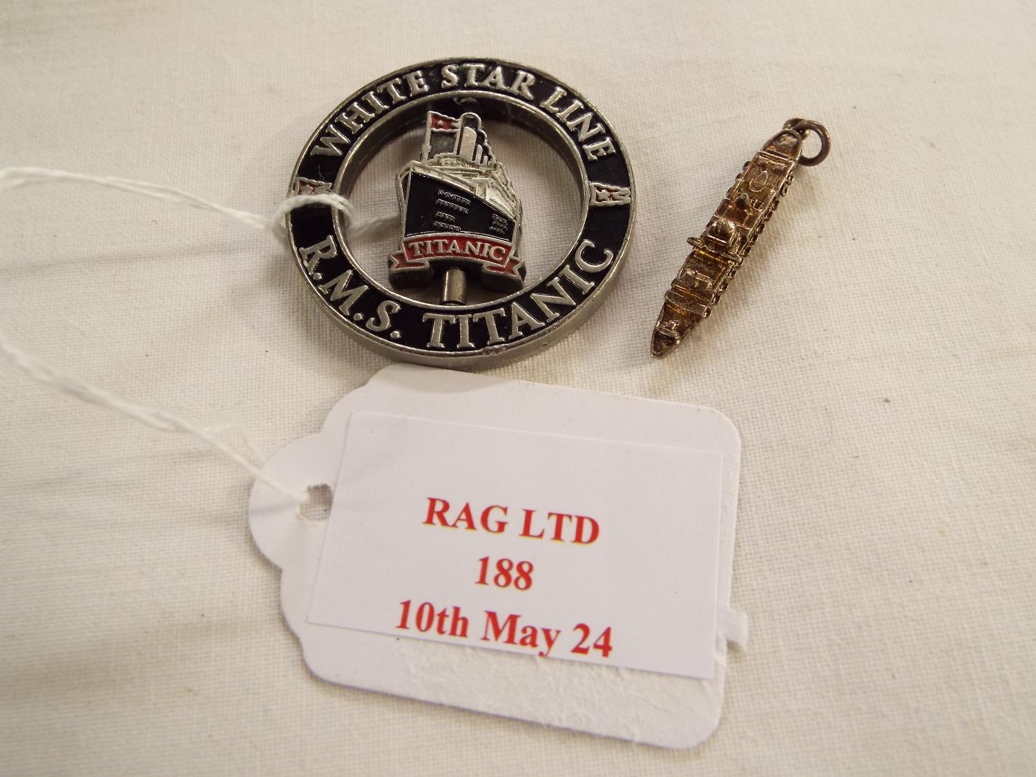 A White Star Line Titanic Spinning small plaque together with a Birmingham silver pendant of the Oriana