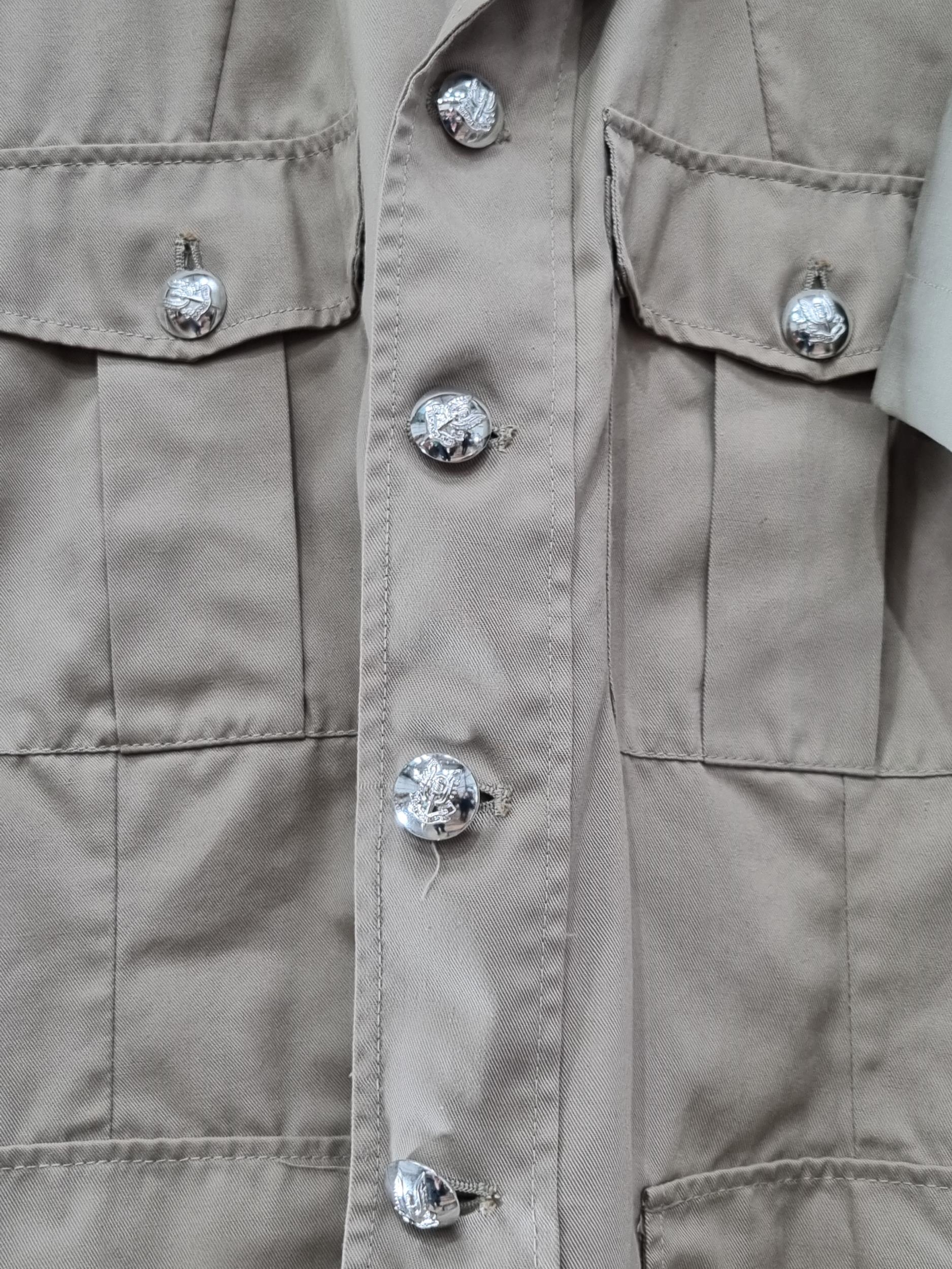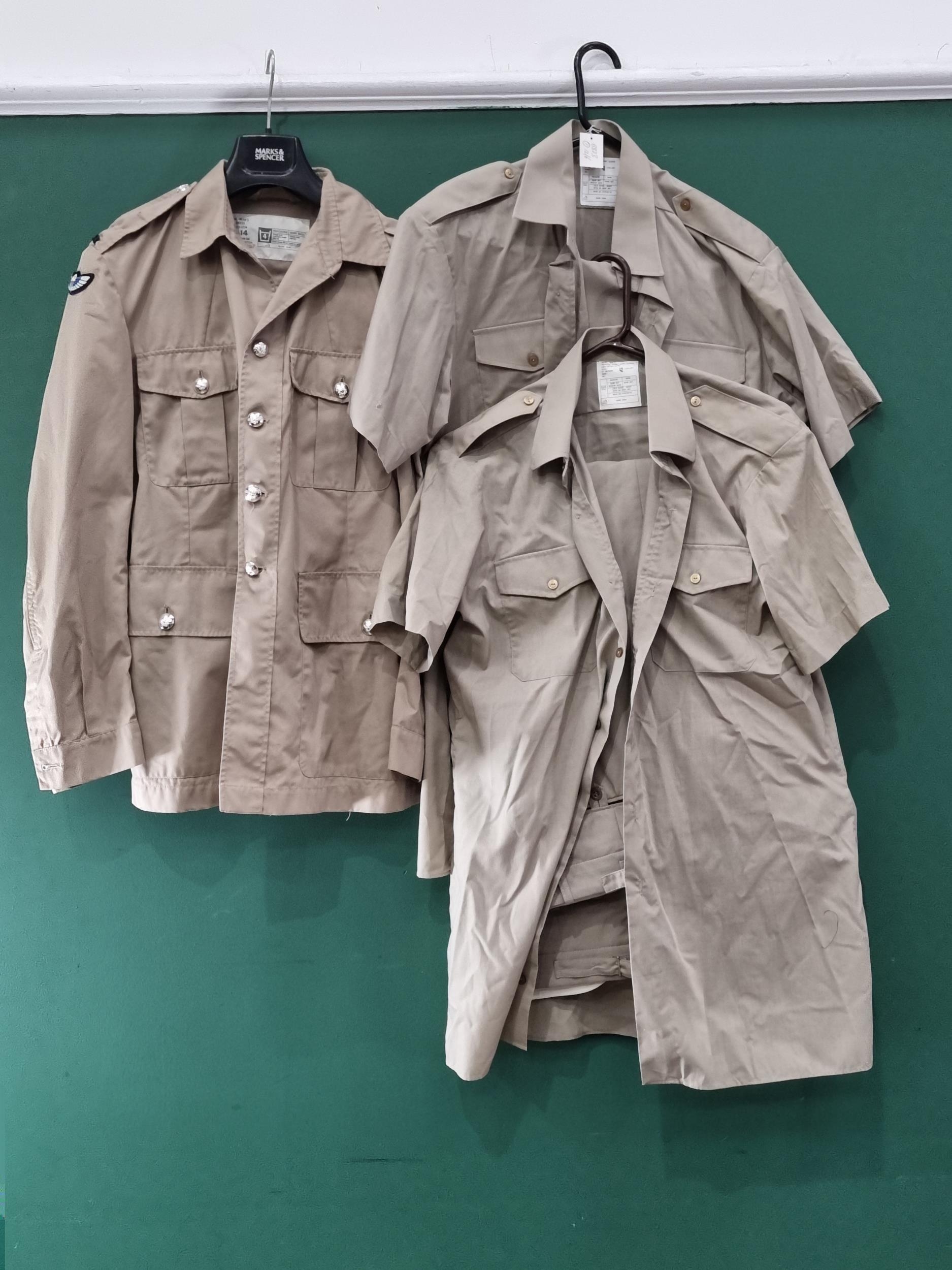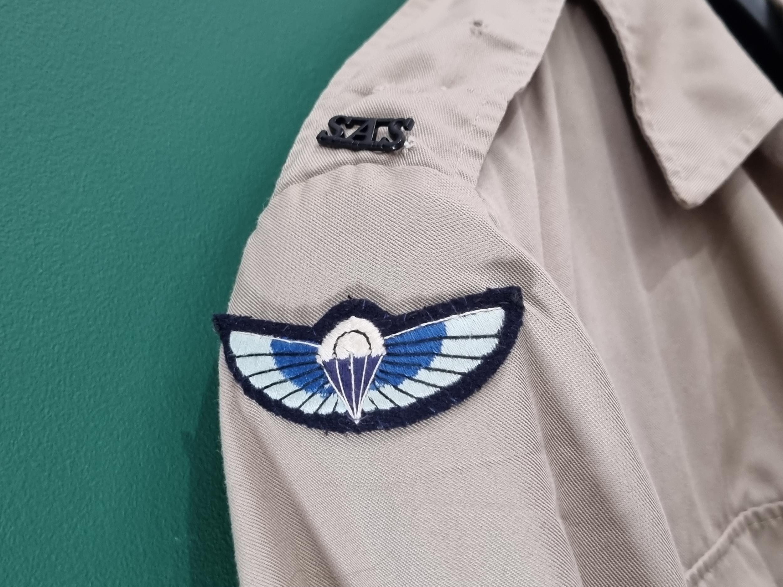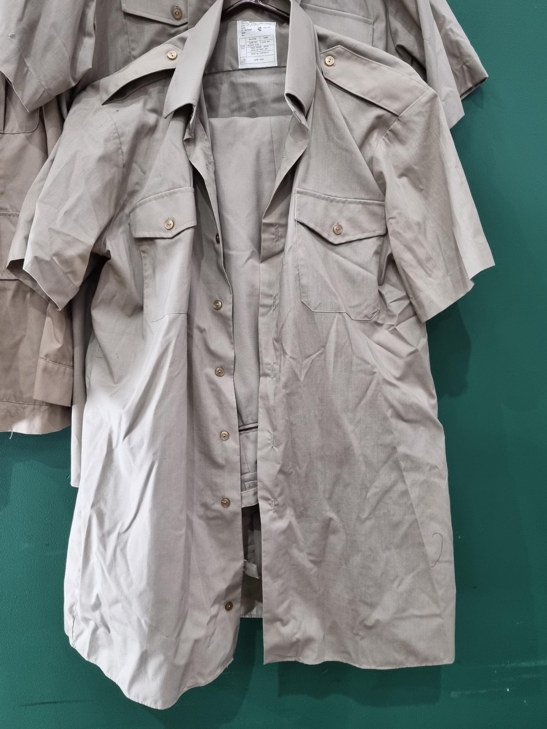 British Special Air Service (S.A.S.) No.6 Dress Uniform consisting of four pocket Tunic with regimental buttons to front and pockets, blackened S.A.S. shoulder titles and padded jump wings; a pair of No.6 Dress Trousers, three pairs of NATO Tropical Trousers, two short sleeve Tropical Shirts and two other Tropical Shirts