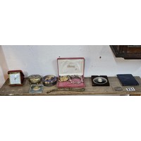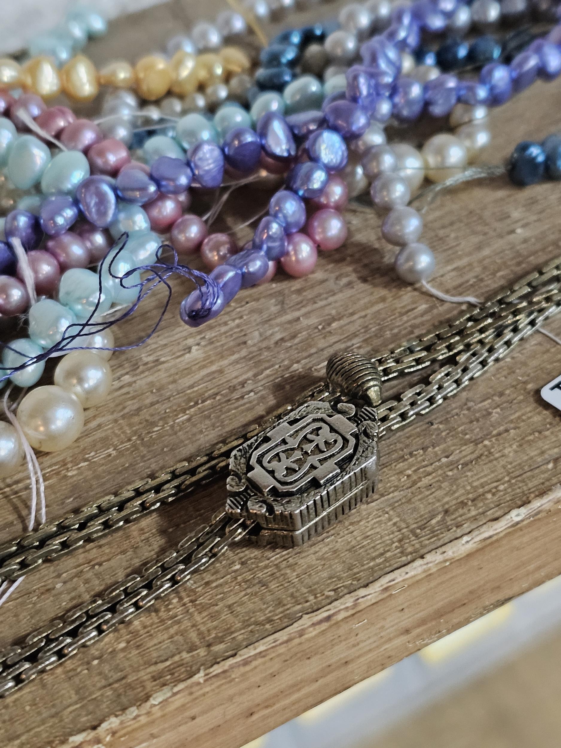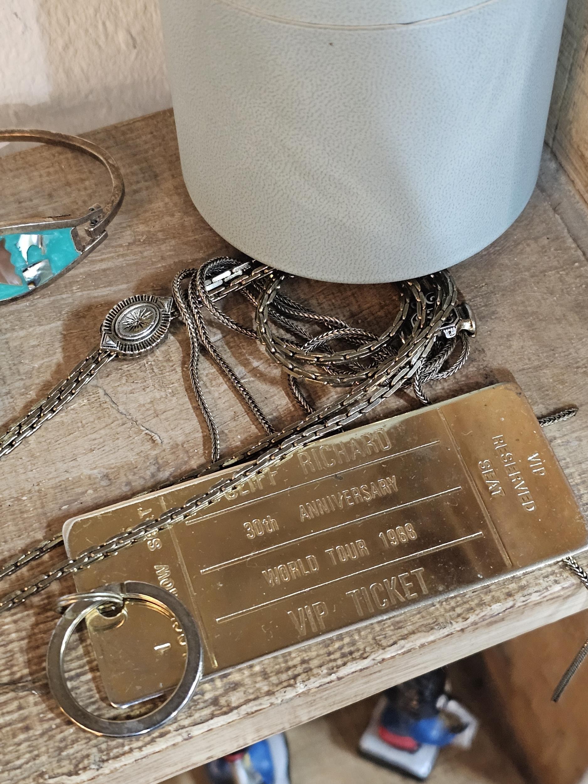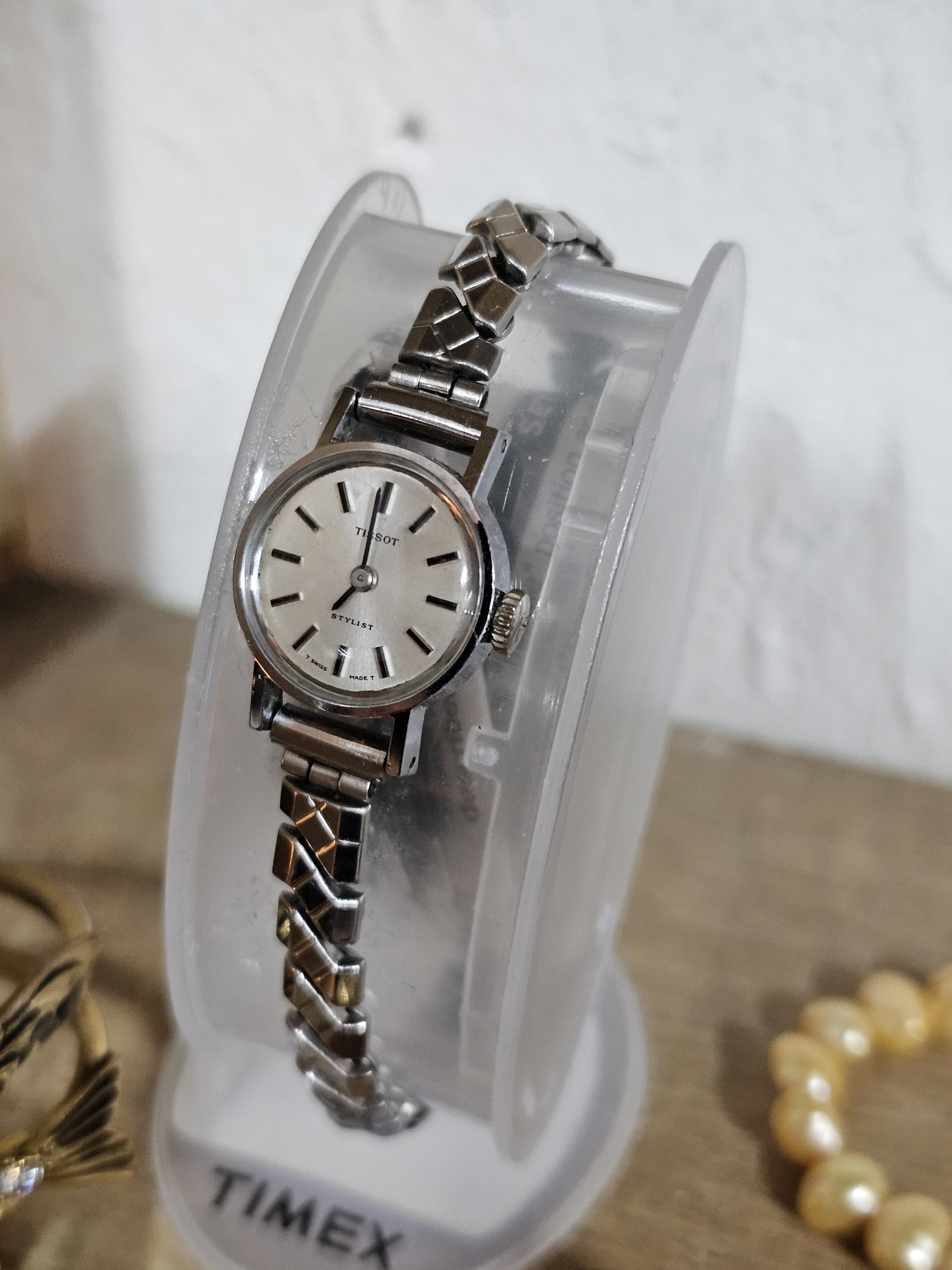 A small quantity of costume jewellery to include beaded necklaces, a metal bracelet with enamel picture to the top, a Timex ladies watch, a Radley ladies watch etc