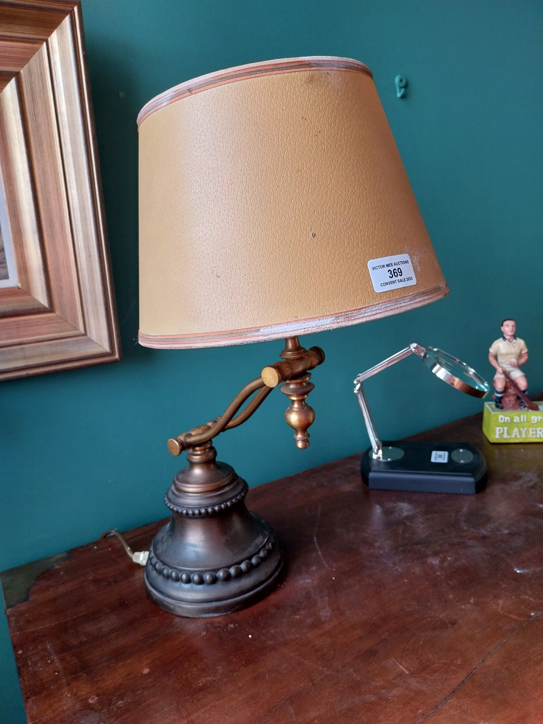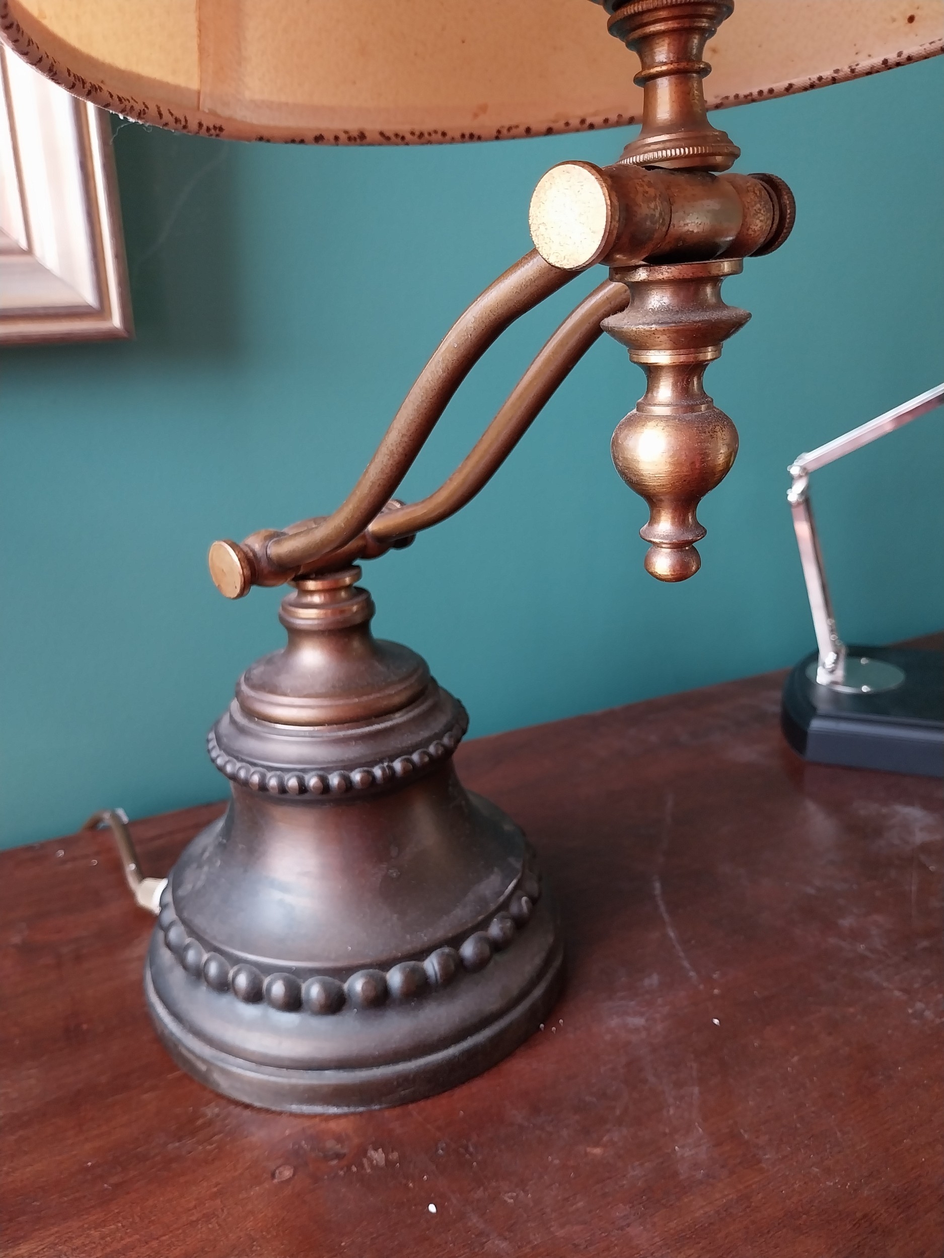 Early 20th. C. bronze and gilded brass adjustable desk lamp. { 47cm H X 25cm W X 33cm D }.