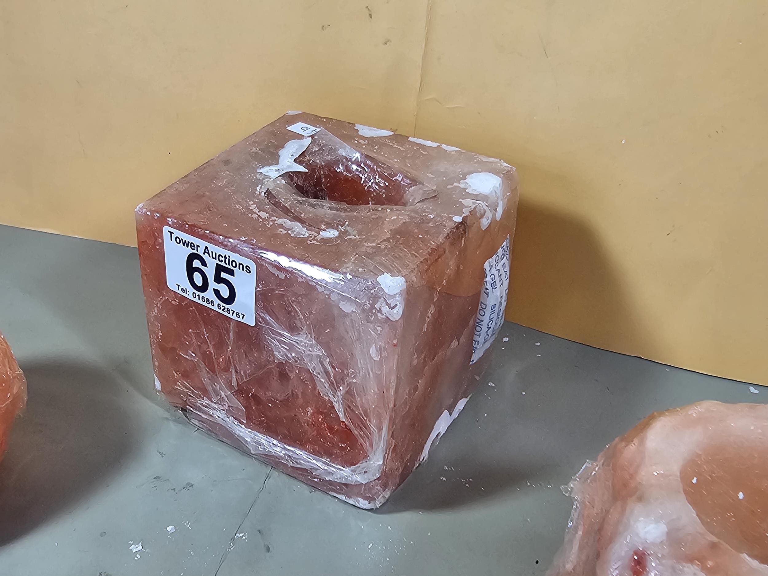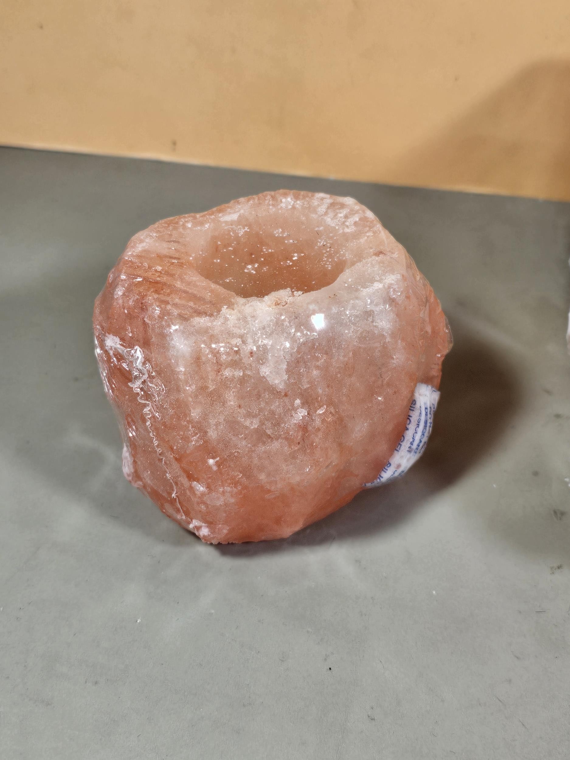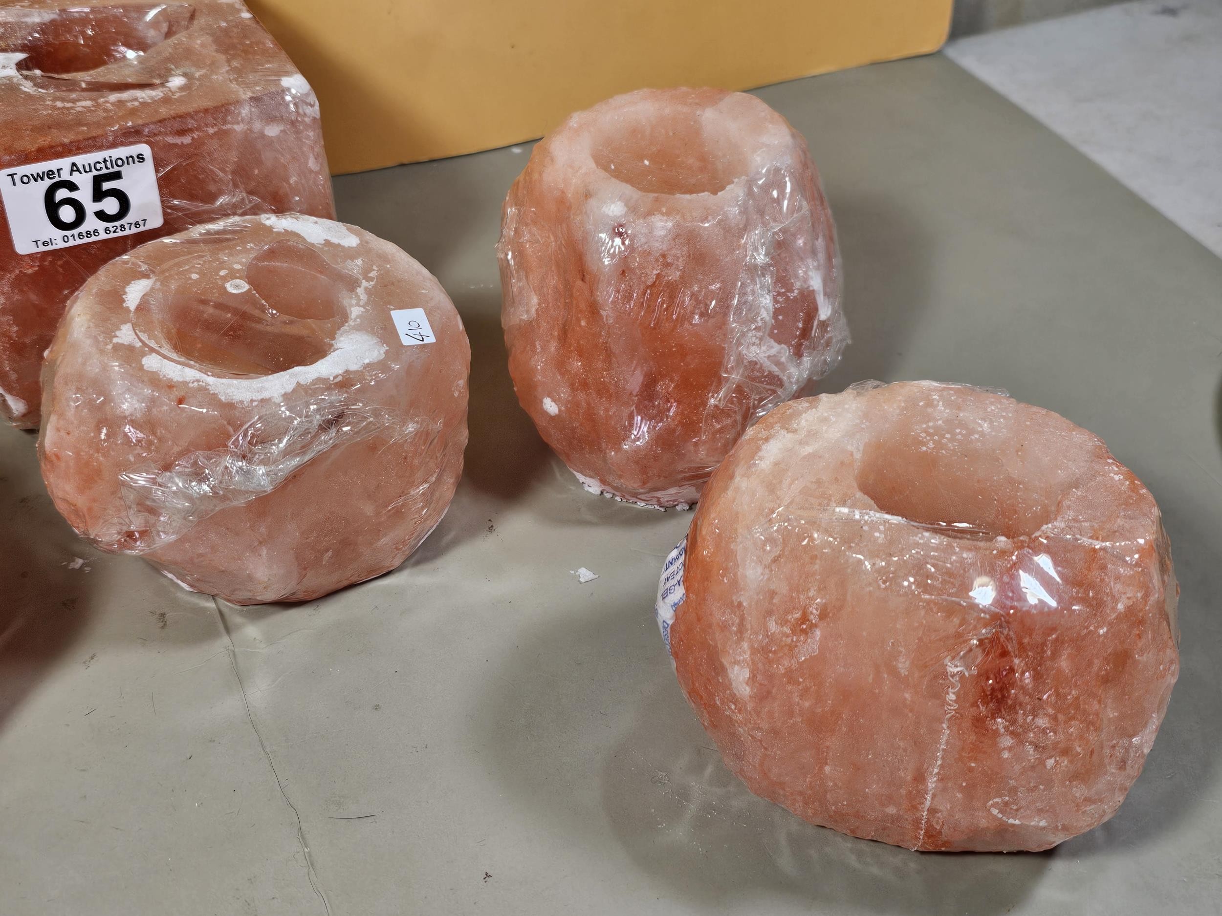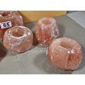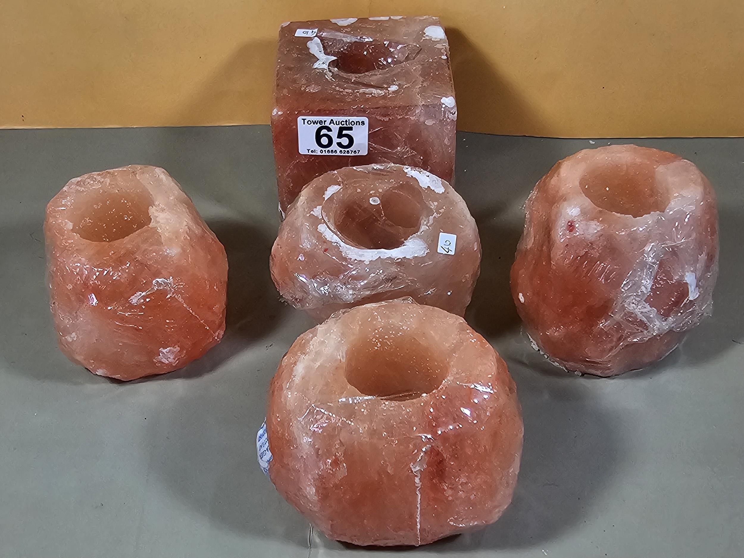 A collection of 5 Himalayan salt lamp tea light holders in good order to include one square one and 4x rock formed ones