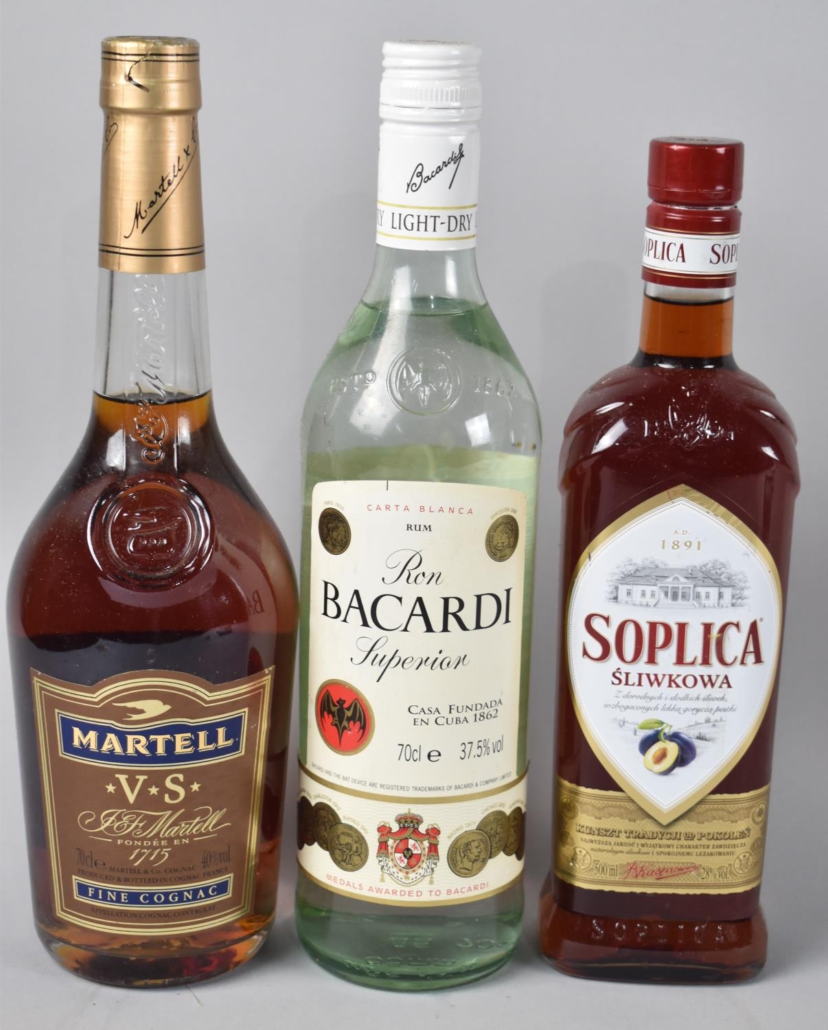 A Single Bottle Martell Cognac, Single Bottle Bacardi Superior and Single Bottle Polish Soplica